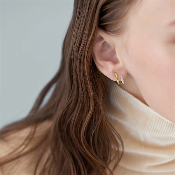 雪のやわらかなイメージをまとい、抑揚のあるシルエットが魅力のイヤーカフ。シルバーにK18イエローゴールドコーティングを施しています。透明感溢れるトパーズを敷き詰めたデザインは、耳元に華やかな輝きをプラス。立体的で安定感のあるフォルムは耳なじみも良く、日常の装いにさりげない特別感を添えます。