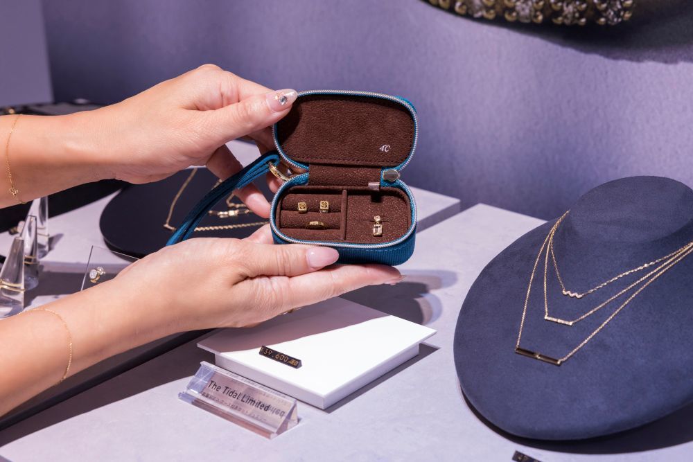 会場では「モード」「オーセンティック」「フェミニン」という3つのテイストを軸に、それぞれの世界観を映し出す空間を構築。静謐な水面のように澄んだ光、流れゆく水が刻む時間のリズム、そして優しく包み込む透明感。ご来場者は歩を進めるごとに、4℃が提案する多面性をもつジュエリーの表情を発見していただけました。