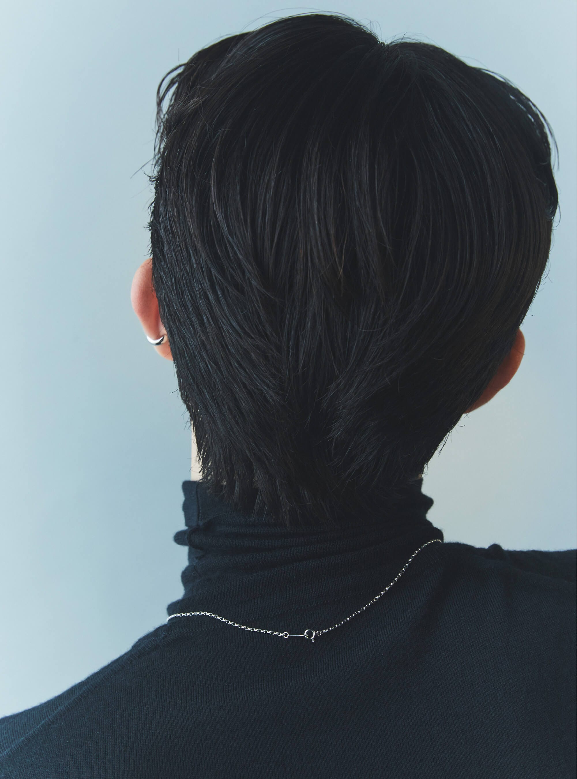 さりげなく主張する「スキンジュエリー」と タートルネックニットで このうえなくシックに
