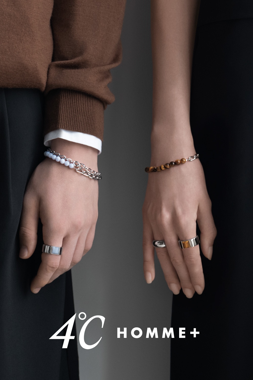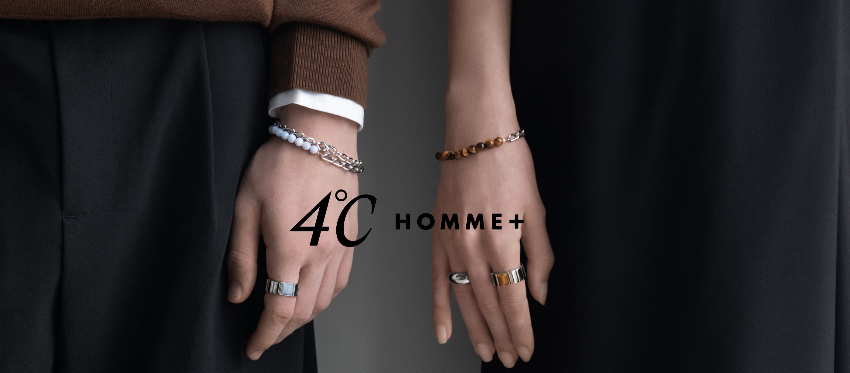 洗練されたフォルム。 研ぎ澄まされたライン。 ひとつひとつが調和し、本物の美しさへ。 それは、時代やジェンダーを 超えて揺るぎなく、 あなたに寄り添いつづける。 「4℃ HOMME+」 時代の一歩先を行く輝きを届けたい。 その想いを「+」にこめて。