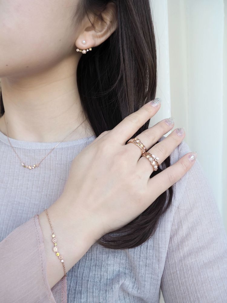 キュービックジルコニアが美しくきらめく主役級ジュエリー。透明感のあるホワイトカラーでコーディネートをすると更に華やかな印象に。