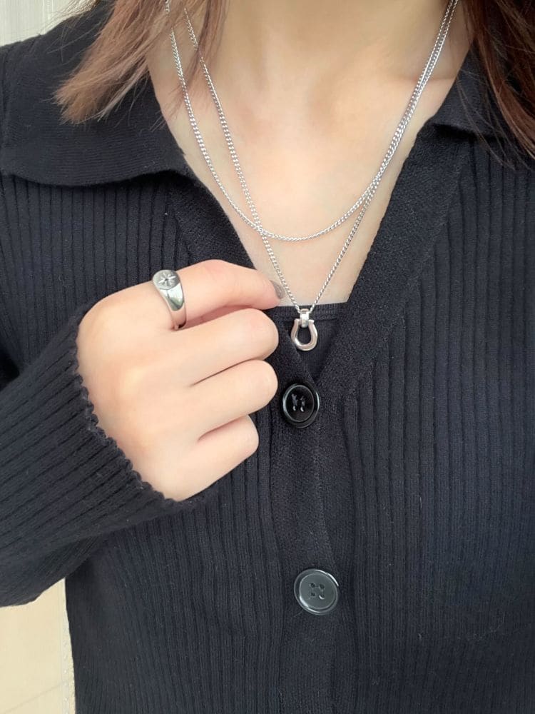 nem.のジュエリーが主役の、ブラウン系カジュアルコーデ。サークルネックレスは胸元にさりげない輝きを添え、シグネットリングは手元にアクセントをプラス。ふわふわニットとスエードジャケットを羽織り、こなれた大人の雰囲気を演出。性別やシーンを問わず楽しめるジュエリーで、いつものコーディネートをワンランクアップさせます。