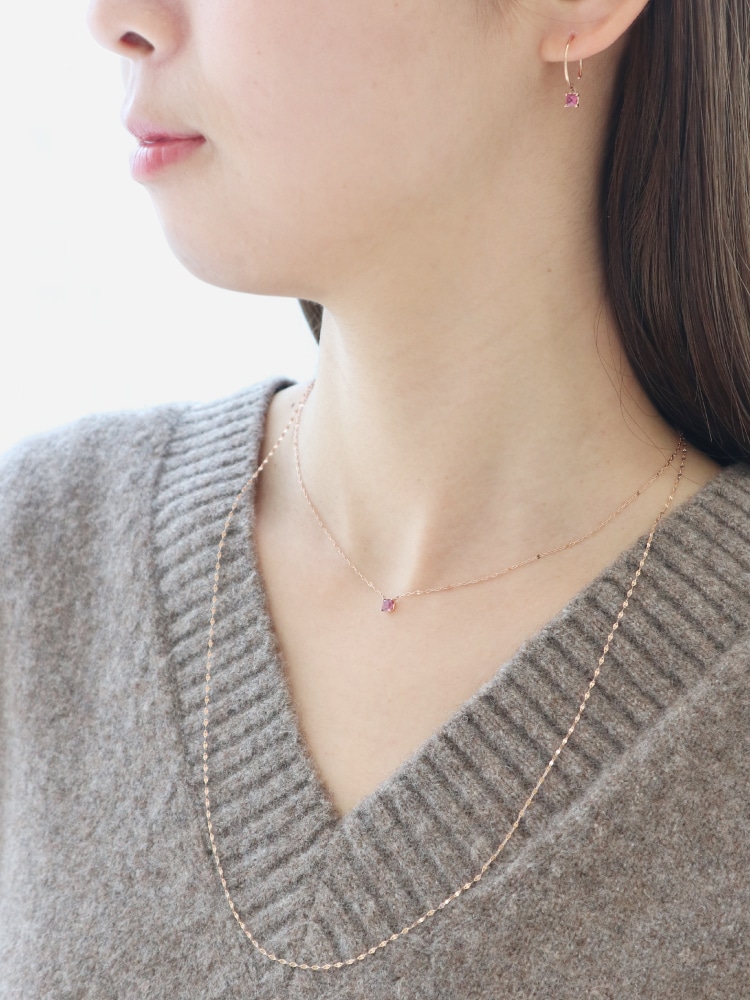 華やかで優しい印象のコーディネート。繊細なデザインを選べばトレンドのイヤーカフも上品にまとまります。