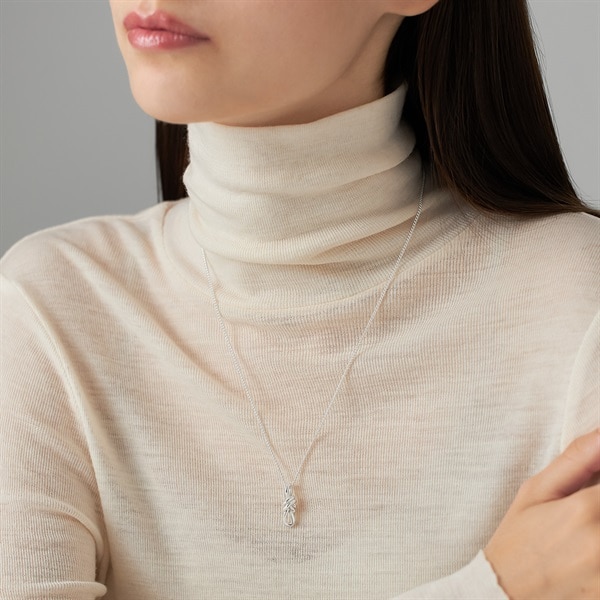 【Holiday Limited Knot】 いつの時代も揺るぎなく寄り添い続ける「結び」をイメージしたノットコレクションからホリデー限定商品が登場。 ロープをざっくり結んだ立体的なシルエットのネックレス。結び目は絆を結ぶ意味を持ち、大切な方へのプレゼントやシェアもおすすめです。結びのパーツはチェーンから取り外せてネックレスチェーンのみでシンプルに身に着けられる2WAY仕様。シルバー本来のナチュラルな風合いを活かしたシルバーカラーが肌に良くなじみます。