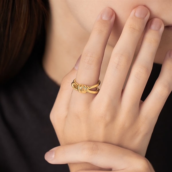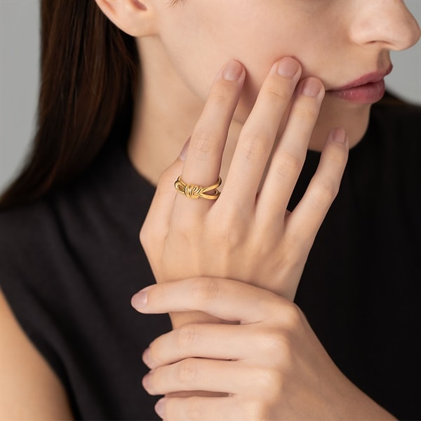 【Holiday Limited Knot】 いつの時代も揺るぎなく寄り添い続ける「結び」をイメージしたノットコレクションからホリデー限定商品が登場。 ロープをざっくり結んだ立体的なシルエットのリング。シルバーにほどこしたK18イエローゴールドコーティングが明るい手元を演出してくれます。結び目は絆を結ぶ意味を持ち、大切な方へのプレゼントやシェアもおすすめです。※ボリューム(幅)のあるリングは、通常より着用時にサイズが小さく感じる場合がございます。