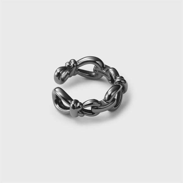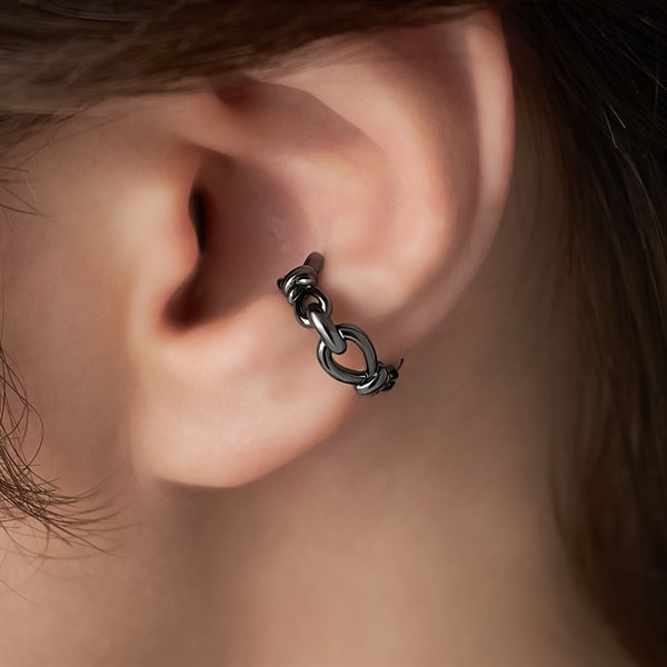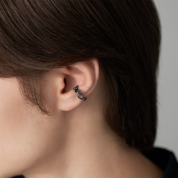 【Knot】 いつの時代も揺るぎなく寄り添い続ける「結び」をイメージしたノットモチーフのイヤーカフ。 結び目の細部にまでこだわったフォルムはデザイン性がありながらも程良いサイズ感でいつものコーディネートにプラスオンしやすいアイテム。漆黒のブラックコーティングで仕上げたオールブラックカラーはいつものコーディネートをモードにアップグレードしてくれます。結び目は絆を結ぶ意味を持ち、大切な方へのプレゼントやシェアもおすすめです。
