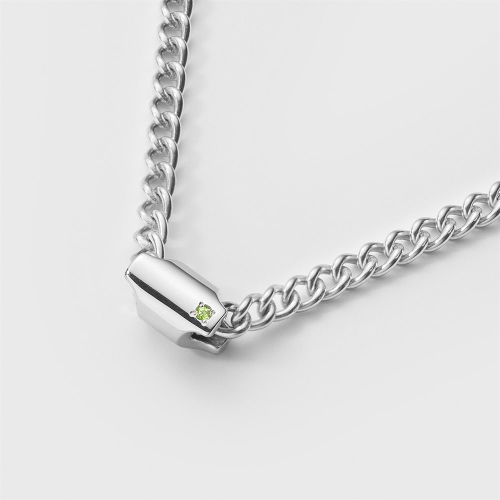 【Birthstone】 8月の誕生石・ペリドットをあしらった結び目をイメージしたエッジーなネックレス。「前向きな心」という意味をもつ石がさり気なく輝きます。シルバー本来のナチュラルな風合いを活かしたノーコーティング仕様。パーソナルなギフトやお守り代わりに自分へのご褒美にも最適。 ※天然石・天然素材を使用しているため、実際の色味や風合いが異なる場合がございます。