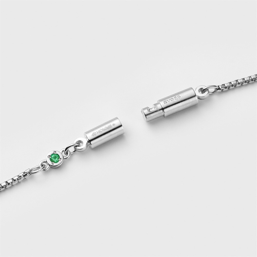 【Birthstone】 5月の誕生石・エメラルドをあしらったチェーンネックレス。「心を愛で満たす」と伝えられ、さり気ないアクセントで輝きます。クラスプとエメラルドを前側に下げても映えるデザイン。パーソナルなギフトやお守り代わりに自分へのご褒美にも最適。プラチナコーティングが上品な贅沢感を添えてくれます。 ※天然石・天然素材を使用しているため、実際の色味や風合いが異なる場合がございます。