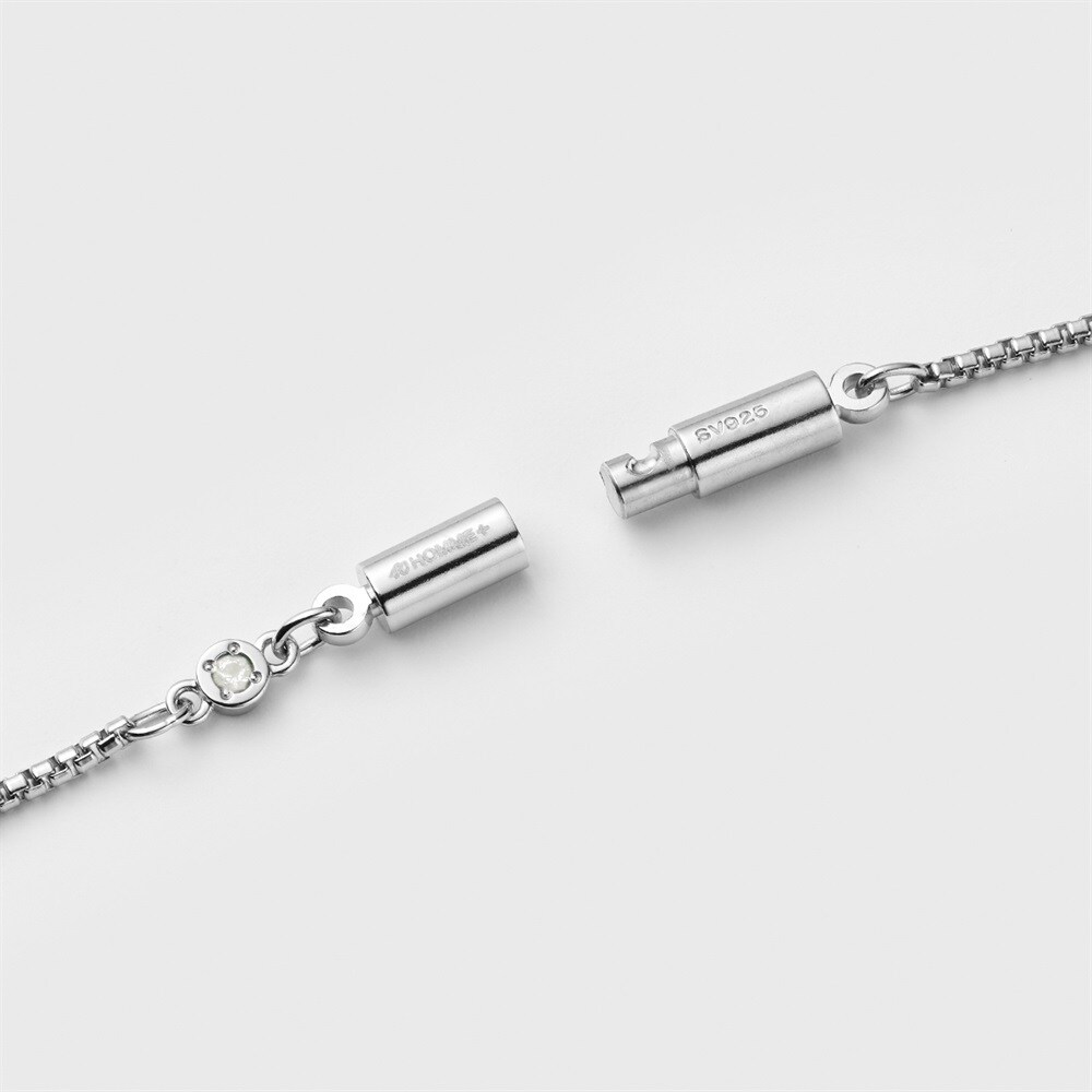 【Birthstone】 6月の誕生石・ムーンストーンをあしらったチェーンネックレス。「心を癒してやわらかにする」という意味をもつ石がさり気なく輝きます。クラスプとムーンストーンを前側に下げても映えるデザイン。プラチナコーティングの上質で落ち着いた艶と洗練されたミニマルデザインは性別を問わず幅広いスタイルになじみます。パーソナルなギフトやご自身用にもおすすめです。 ※天然石・天然素材を使用しているため、実際の色味や風合いが異なる場合がございます。