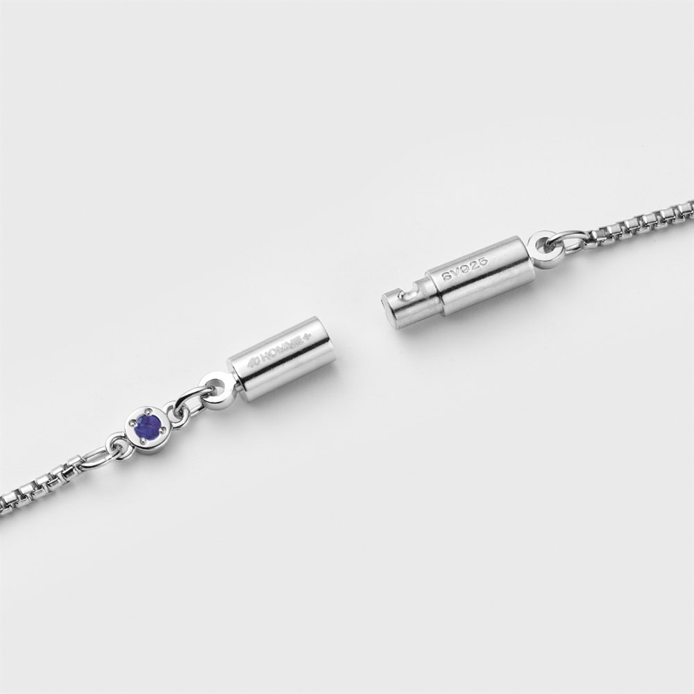 【Birthstone】 9月の誕生石・サファイアをあしらったチェーンネックレス。「目標への道しるべ」という意味をもつ石がさり気なく輝きます。クラスプとサファイアを前側に下げても映えるデザイン。プラチナコーティングの上質で落ち着いた艶と洗練されたミニマルデザインは性別を問わず幅広いスタイルになじみます。パーソナルなギフトやご自身用にもおすすめです。 ※天然石・天然素材を使用しているため、実際の色味や風合いが異なる場合がございます。