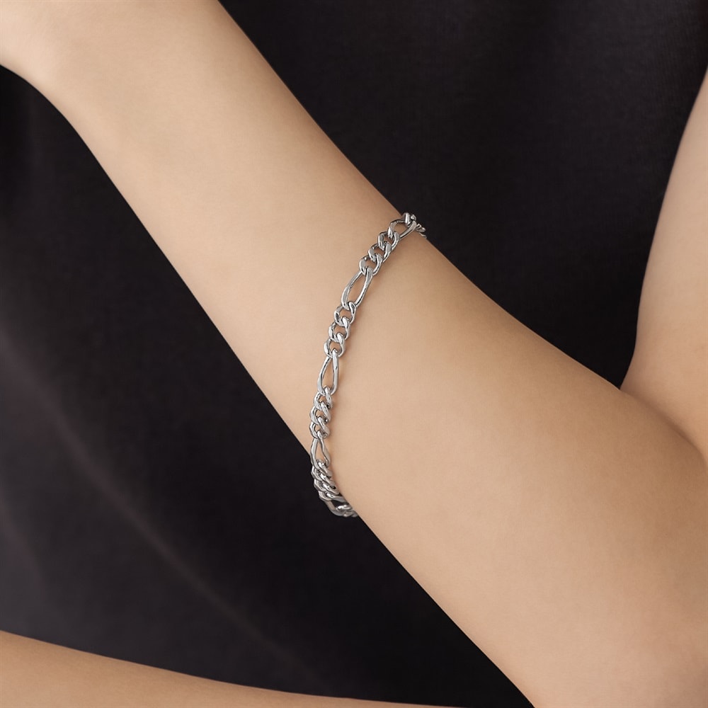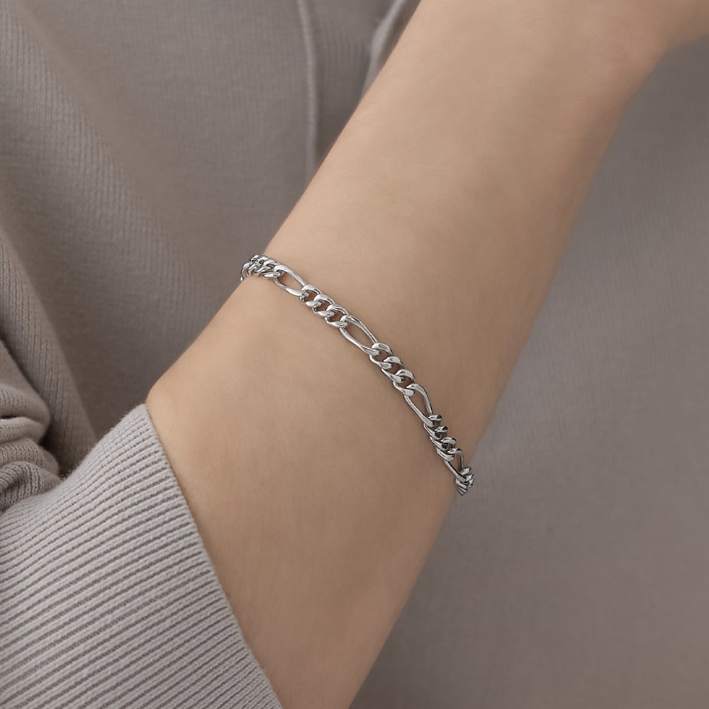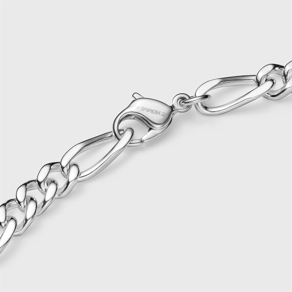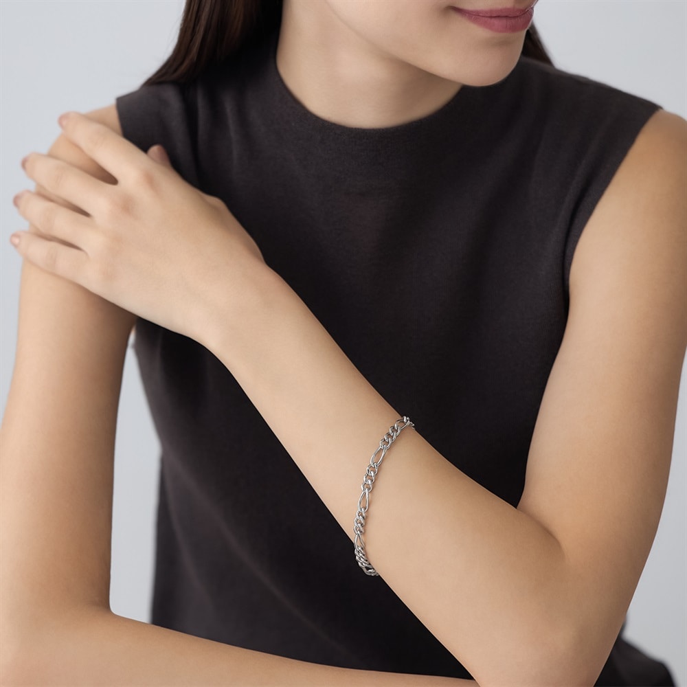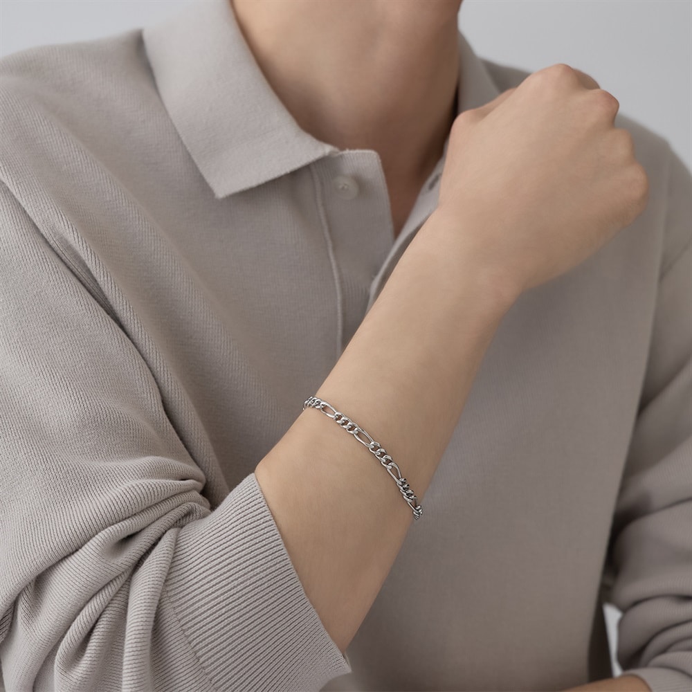 【RAW LINE】 素のままの無駄を削ぎ落としたミニマルなデザイン。手元にエッジーなアクセントを与えるチェーンブレスレットはピッチの違ったコマをミックスしたデザイン性の高いチェーンを使用。広いコマ箇所でクラスプをジョイントし、長さ調整が可能です。シルバー本来のナチュラルな風合いを活かしたノーコーティング仕様です。
