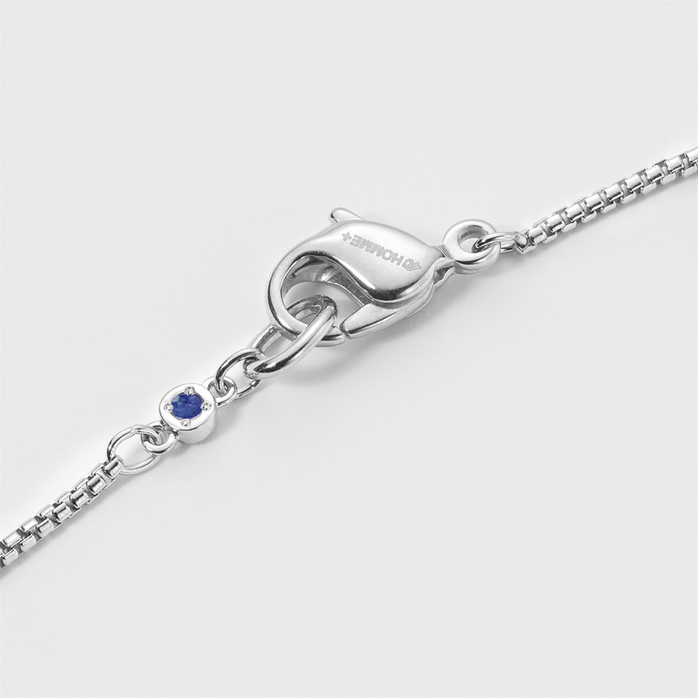 【Birthstone】 9月の誕生石・サファイアをあしらったチェーンブレスレット。「目標への道しるべ」という意味をもつ石がさり気なく輝きます。プラチナコーティングの上質で落ち着いた艶と洗練されたミニマルデザインは性別を問わず幅広いスタイルになじみます。パーソナルなギフトやご自身用にもおすすめです。 ※天然石・天然素材を使用しているため、実際の色味や風合いが異なる場合がございます。
