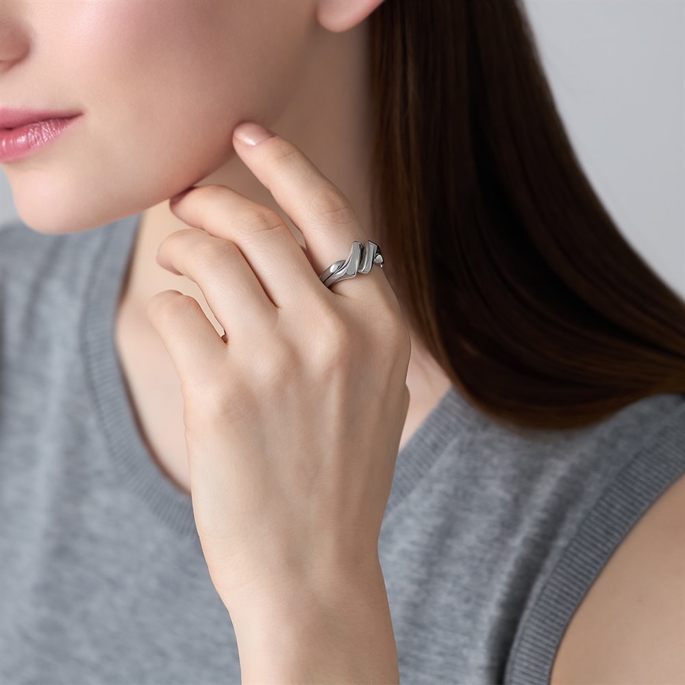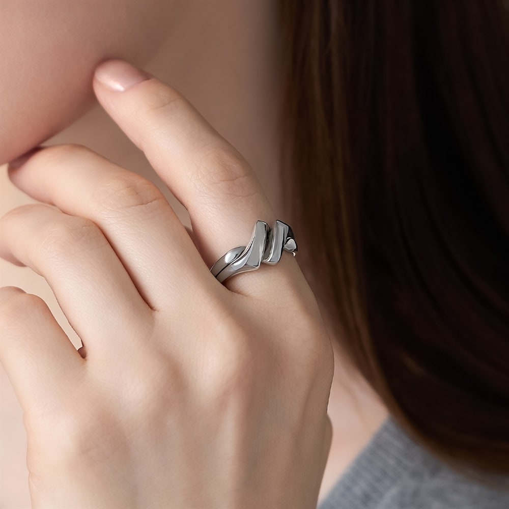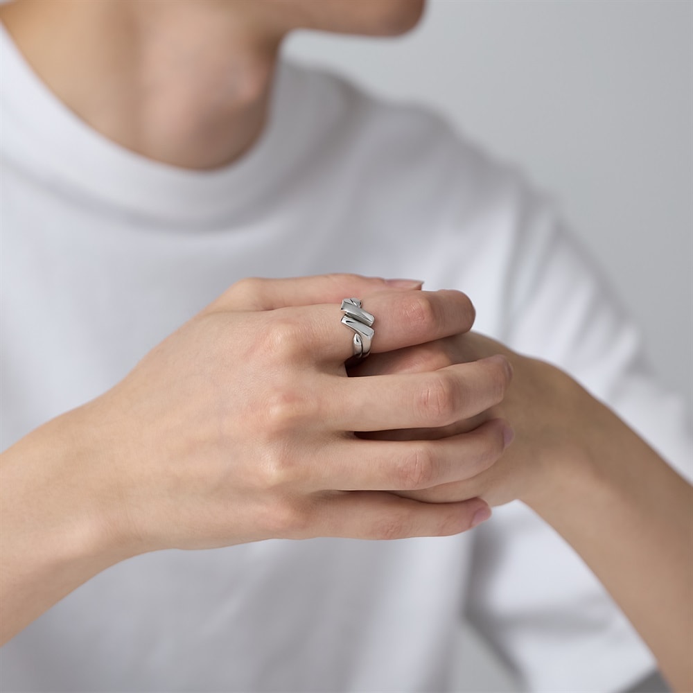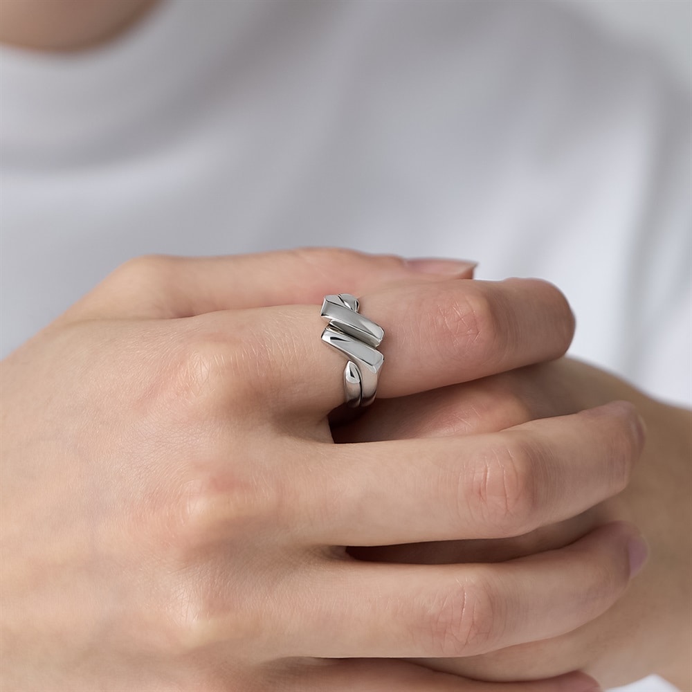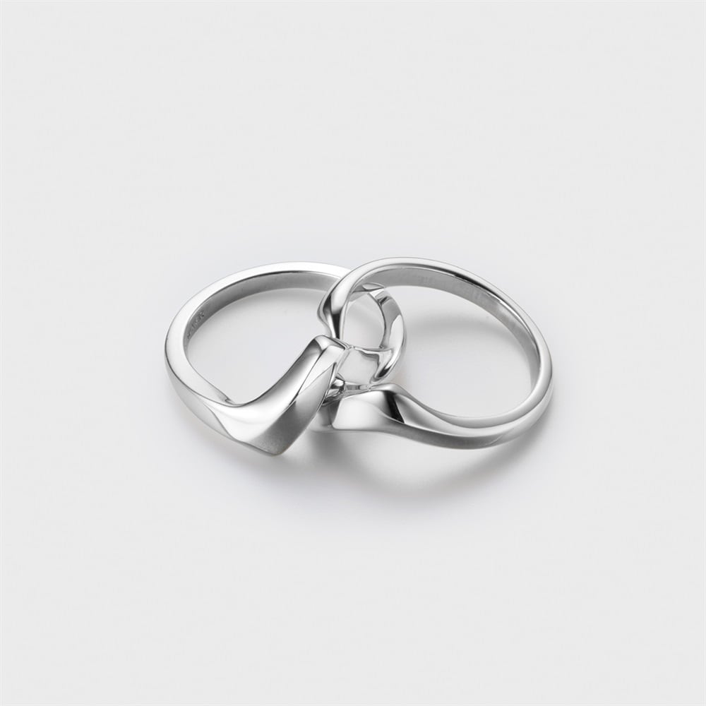 【RAW SOLID】 無駄を削ぎ落としたミニマルなデザインが特徴のシリーズ。「双子」を意味し、2本の指輪が知恵の輪のように組み合わさって1つの指輪になるギメルリング。結びをイメージした強い絆や一体感を象徴とするタイムレスなデザインです。プラチナコーティングをほどこしたシルバーが上品な艶を添えます。大切な方へのギフトやペアジュエリーとしてもおすすめです。※ボリューム(幅)のあるリングは、通常より着用時にサイズが小さく感じる場合がございます。