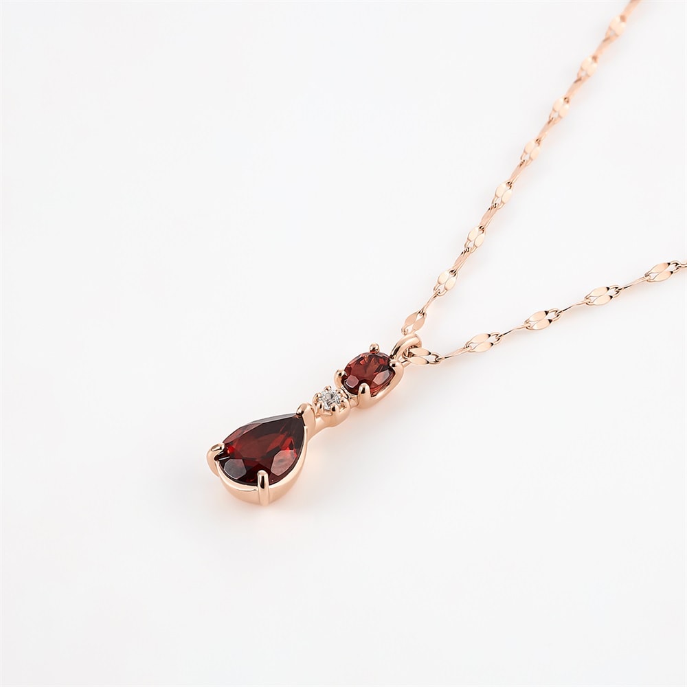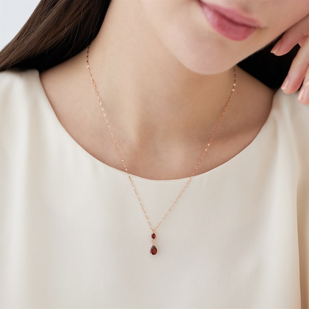 〈Radiant Grace〉新たな希望と喜びに溢れる、輝かしい新年にふさわしいニューイヤーコレクション。ガーネットの輝きを主役にしたネックレス。キラキラと煌めくデザインチェーンと合わせる事でより美しさが引き立ちます。縦長のシルエットで首元をスッキリ魅せてくれます。オーバルカットをほどこしたガーネットの石座には幸せを招く馬蹄モチーフのデザインをあしらい、お守りのように身に着けられます。ガーネットの石言葉は「成功と前進へ導く」。ご自身へのご褒美はもちろんギフトにもおすすめです。※天然石・天然素材を使用しているため、実際の色味や風合いが異なる場合がございます。[数量限定ケース付き] なくなり次第終了※ショッピングバッグ内の画像が限定ケースではない場合、限定ケースのお取り扱いは終了しております。