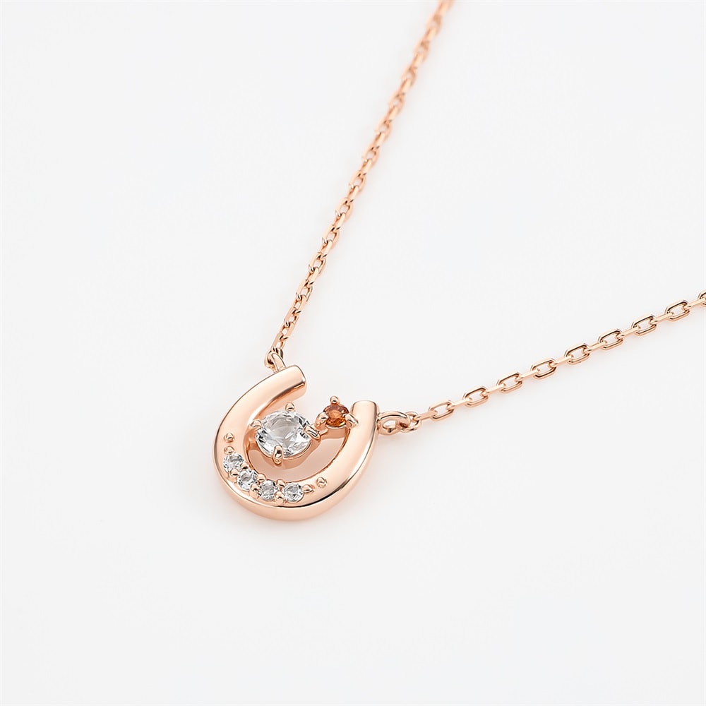 〈Radiant Grace〉新たな希望と喜びに溢れる、輝かしい新年にふさわしいニューイヤーコレクション。馬蹄モチーフが可憐なネックレス。みずみずしく輝くトパーズとガーネットの輝きが合間って上品な印象に。ホワイトトパーズの石言葉は「希望にみちた未来へ導く」とされ、ご自身へのお守りジュエリーはもちろんギフトにもおすすめです。※天然石・天然素材を使用しているため、実際の色味や風合いが異なる場合がございます。[数量限定ケース付き] なくなり次第終了※ショッピングバッグ内の画像が限定ケースではない場合、限定ケースのお取り扱いは終了しております。
