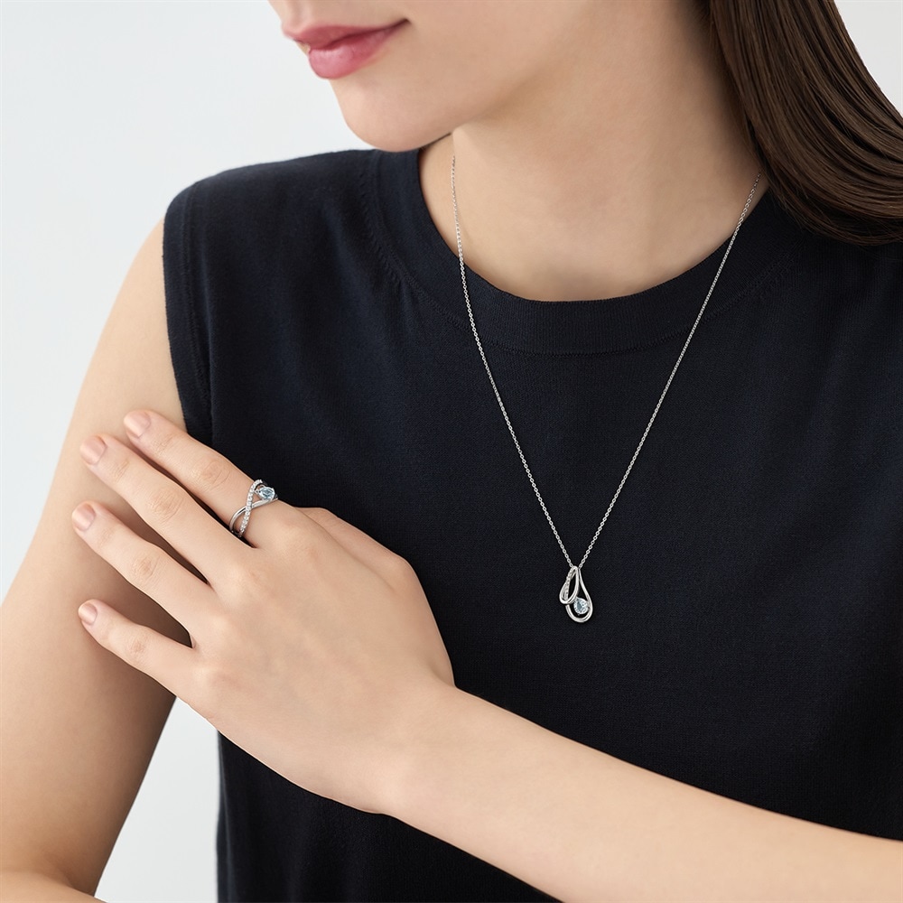 水のようにしなやかに日々を過ごして欲しいという想いを込めた、優美さと繊細な煌めきを纏った4℃ ANNIVERSARYコレクション。 4℃らしい美しくなめらかな地金ラインと、水面のようにキラキラと輝くコンケーブカットをほどこしたブルートパーズの煌めきが楽しめるネックレス。地金に滑り込ませて石を留めた、立体的なデザインが魅力です。 立体感とボリューム感のあるアイテムで、コーデの主役に。ネックレスは50cmの長さで、厚手のトップスの上でも存在感を放ちます。 ※天然石・天然素材を使用しているため、実際の色味や風合いが異なる場合がございます【コーディネートアイテム】品番:112614141907 リングはこちら >