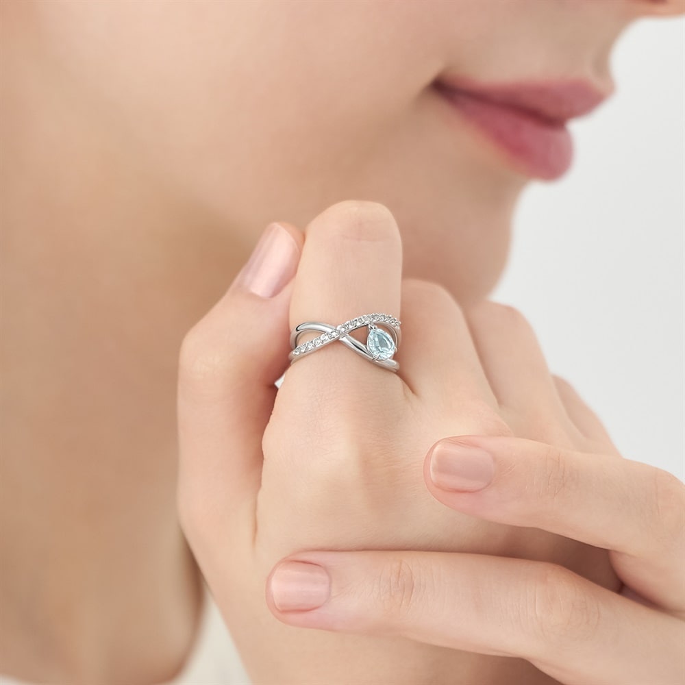 水のようにしなやかに日々を過ごして欲しいという想いを込めた、優美さと繊細な煌めきを纏った4℃ ANNIVERSARYコレクション。 4℃らしい美しくなめらかな地金ラインと、水面のようにキラキラと輝くコンケーブカットをほどこしたブルートパーズの煌めきが楽しめるリング。ラインとラインが重なり合う立体的なデザインが魅力です。 立体感とボリューム感のあるアイテムで、コーデの主役に。手元を華やかに演出してくれるアイテムです。 ※天然石・天然素材を使用しているため、実際の色味や風合いが異なる場合がございます。※ボリューム(幅)のあるリングは、通常より着用時にサイズが小さく感じる場合がございます。【コーディネートアイテム】品番:112614121924 ネックレスはこちら >