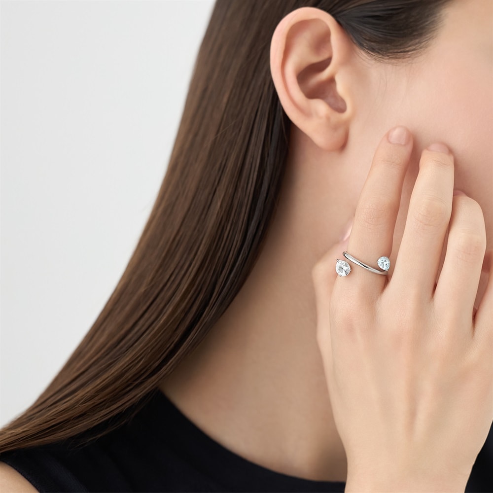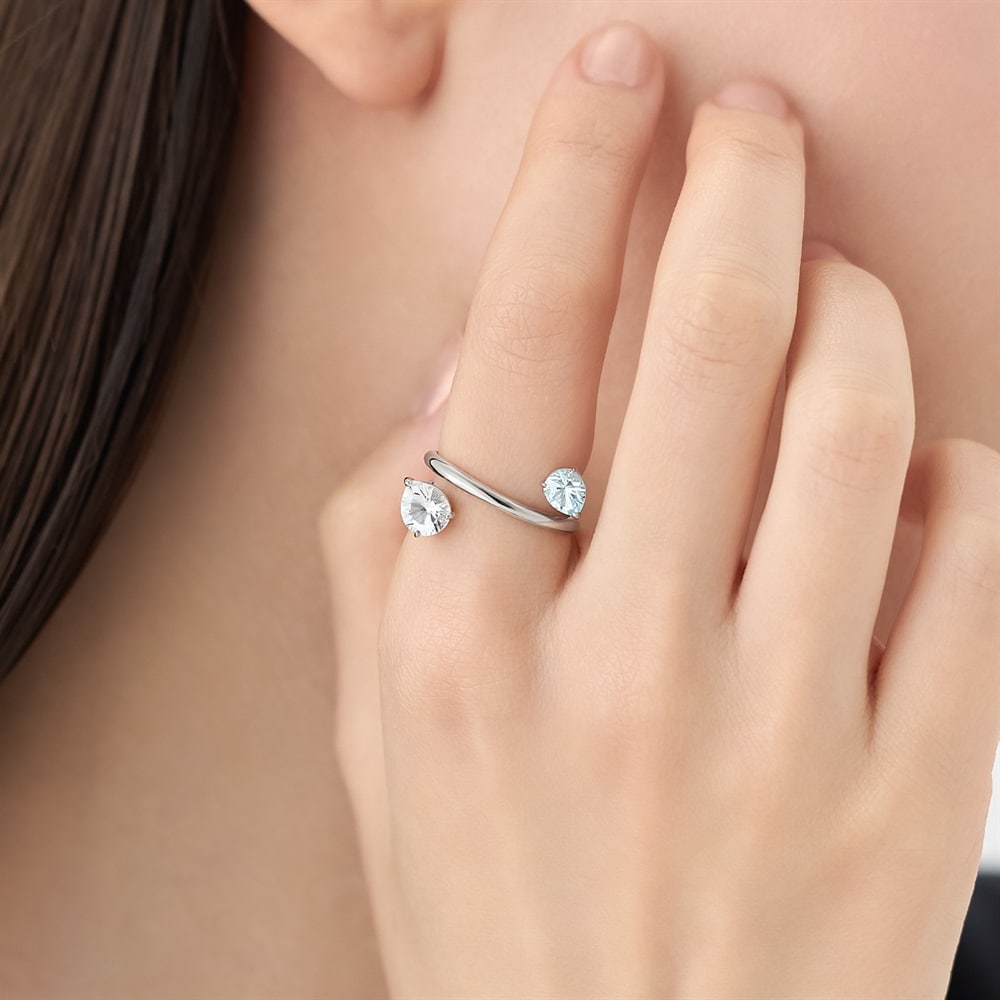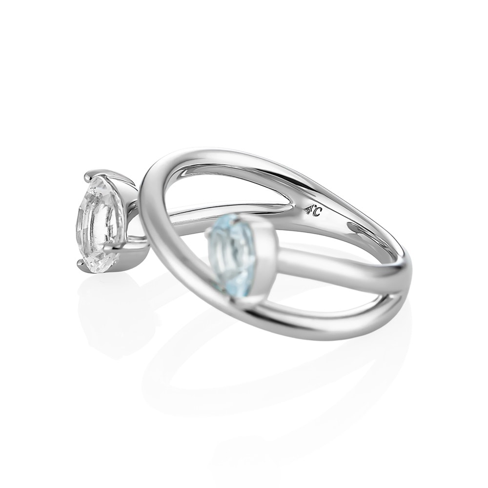 水のようにしなやかに日々を過ごして欲しいという想いを込めた、優美さと繊細な煌めきを纏った4℃ ANNIVERSARYコレクション。 水に触れた時、肌の上に透き通った水滴がそっと佇んでいるような、そんな瞬間を切り取ったリング。水面のようにキラキラと輝くコンケーブカットをほどこしたブルートパーズとクォーツの煌めきが楽しめるアイテム。指と指の隙間に石が佇むデザインはこなれ感を演出してくれます。 ※天然石・天然素材を使用しているため、実際の色味や風合いが異なる場合がございます。※ボリューム(幅)のあるリングは、通常より着用時にサイズが小さく感じる場合がございます。【コーディネートアイテム】品番:112614151931 ピアスはこちら >品番:112614121925 ネックレスはこちら >