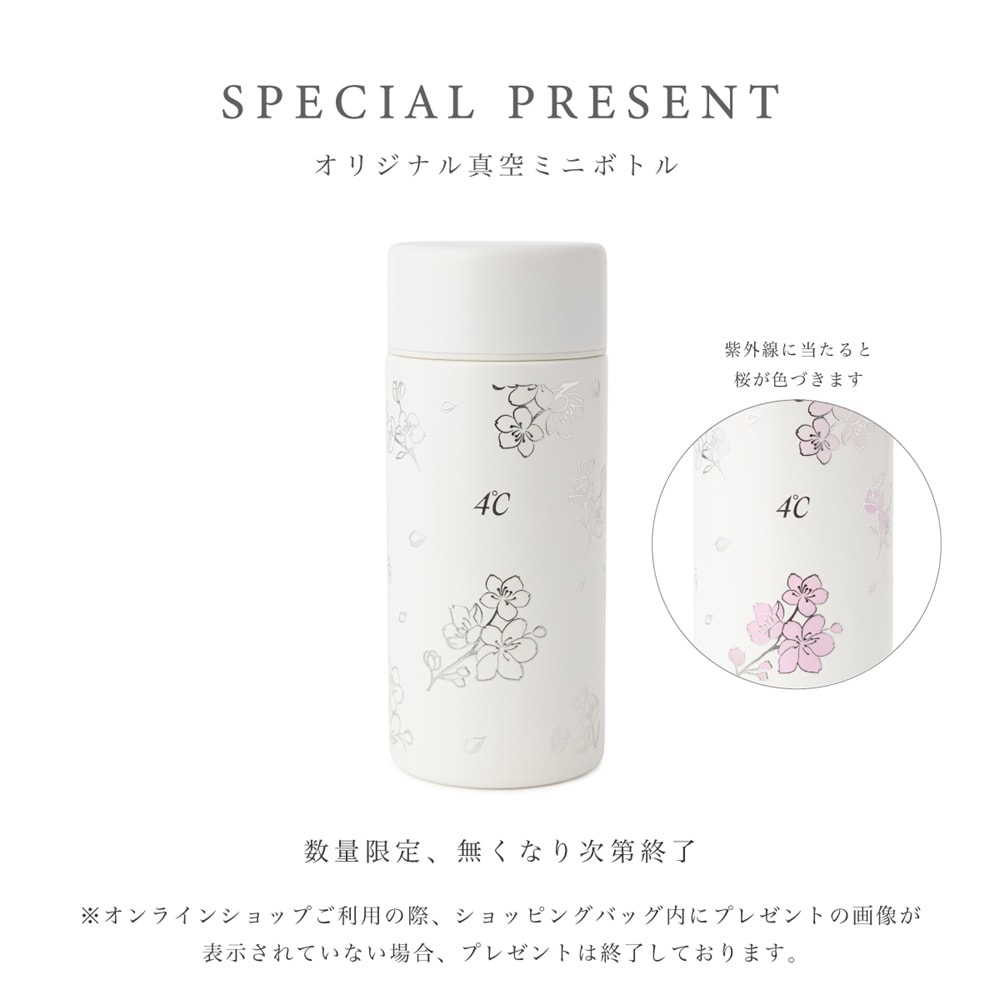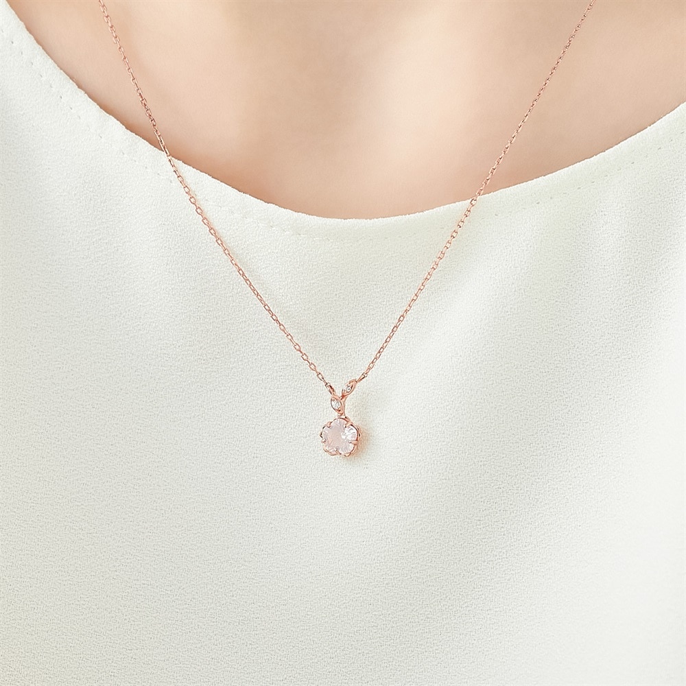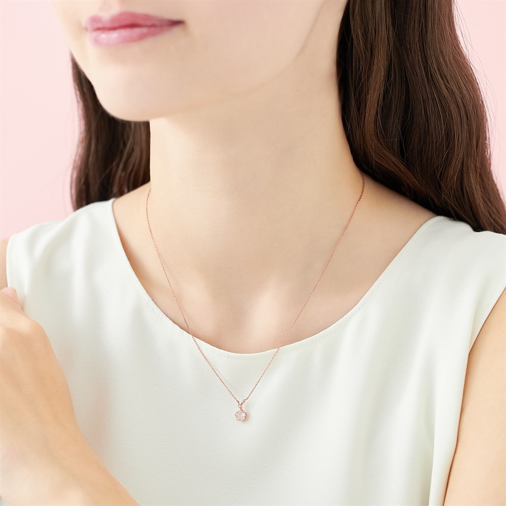 SAKURA Collection一覧はこちら >満開に咲き誇る桜が、身に着けるひとの心に寄り添い幸せを運ぶコレクション。満開に咲き誇る桜をローズクォーツのオリジナルカットで表現したネックレス。桜をかたどったフォルムに、内側から湧き上がるようなコンケーブカットの輝きが魅力。桜の葉を添えたアシンメトリーの縦のラインで、大人っぽくスッキリとした印象に仕上げました。淡いピンクカラーのローズクォーツは『美・愛・優しさ』を意味し、身に着けるひとに愛をもたらし美しさと優しさを印象付けます。※天然石・天然素材を使用しているため、実際の色味や風合いが異なる場合がございます。[数量限定ケース&限定ショッパー付き] なくなり次第終了 ※ショッピングバッグ内の画像が限定ケースではない場合、限定ケースのお取り扱いは終了しております。 こちらのジュエリーをご購入のお客さまに、オリジナル真空ミニボトルをプレゼント。 [数量限定]なくなり次第終了※ショッピングバッグ内にノベルティの画像が表示されていない場合、ノベルティのお取り扱いは終了しております。