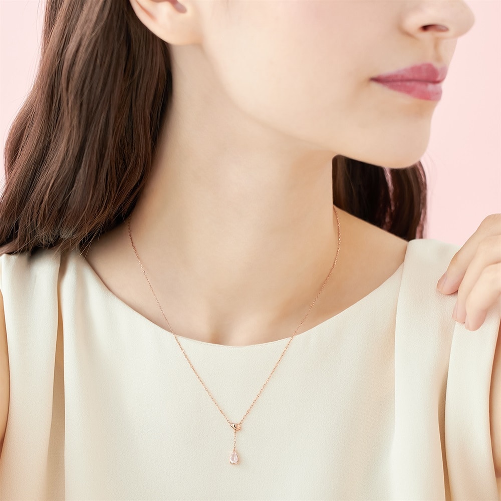 SAKURA Collection一覧はこちら >満開に咲き誇る桜が、身に着けるひとの心に寄り添い幸せを運ぶコレクション。花びらが舞うようなY字のK10ピンクゴールドネックレス。桜の花びらをかたどったフォルムに、内側から湧き上がるような輝きが魅力のオリジナルのコンケーブカットが印象的なデザインです。2種類のチェーンをミックスすることで、胸元に春の煌めきと奥行きをプラス。淡いピンクカラーのローズクォーツは『美・愛・優しさ』を意味し、身に着けるひとに愛をもたらし美しさと優しさを印象付けます。ご自身へのご褒美はもちろん、大切な方へのプレゼントにもおすすめです。※天然石・天然素材を使用しているため、実際の色味や風合いが異なる場合がございます。[数量限定ケース&限定ショッパー付き] なくなり次第終了 ※ショッピングバッグ内の画像が限定ケースではない場合、限定ケースのお取り扱いは終了しております。 こちらのジュエリーをご購入のお客さまに、オリジナル真空ミニボトルをプレゼント。 [数量限定]なくなり次第終了※ショッピングバッグ内にノベルティの画像が表示されていない場合、ノベルティのお取り扱いは終了しております。