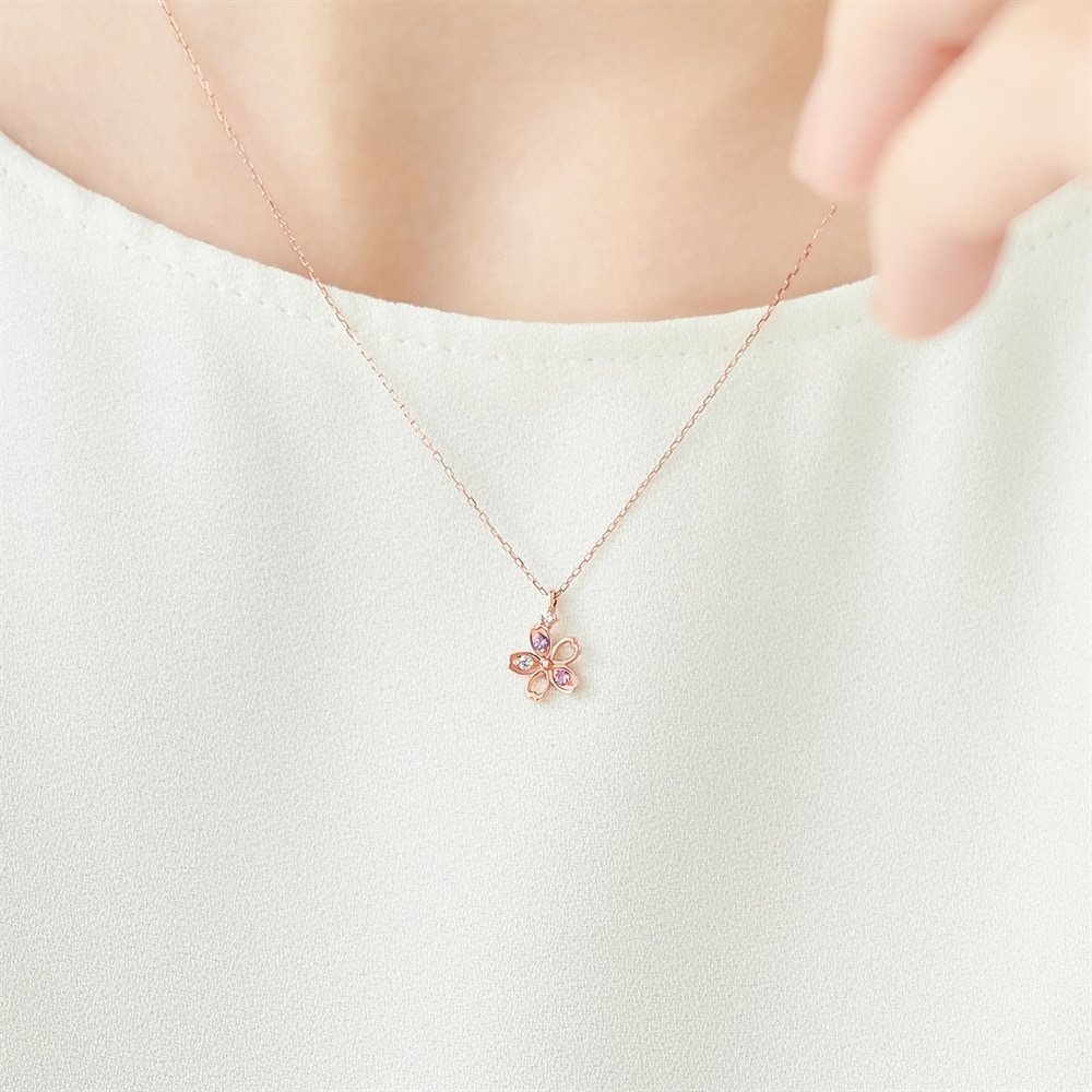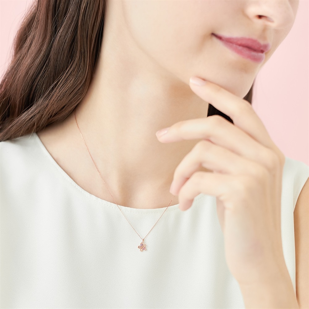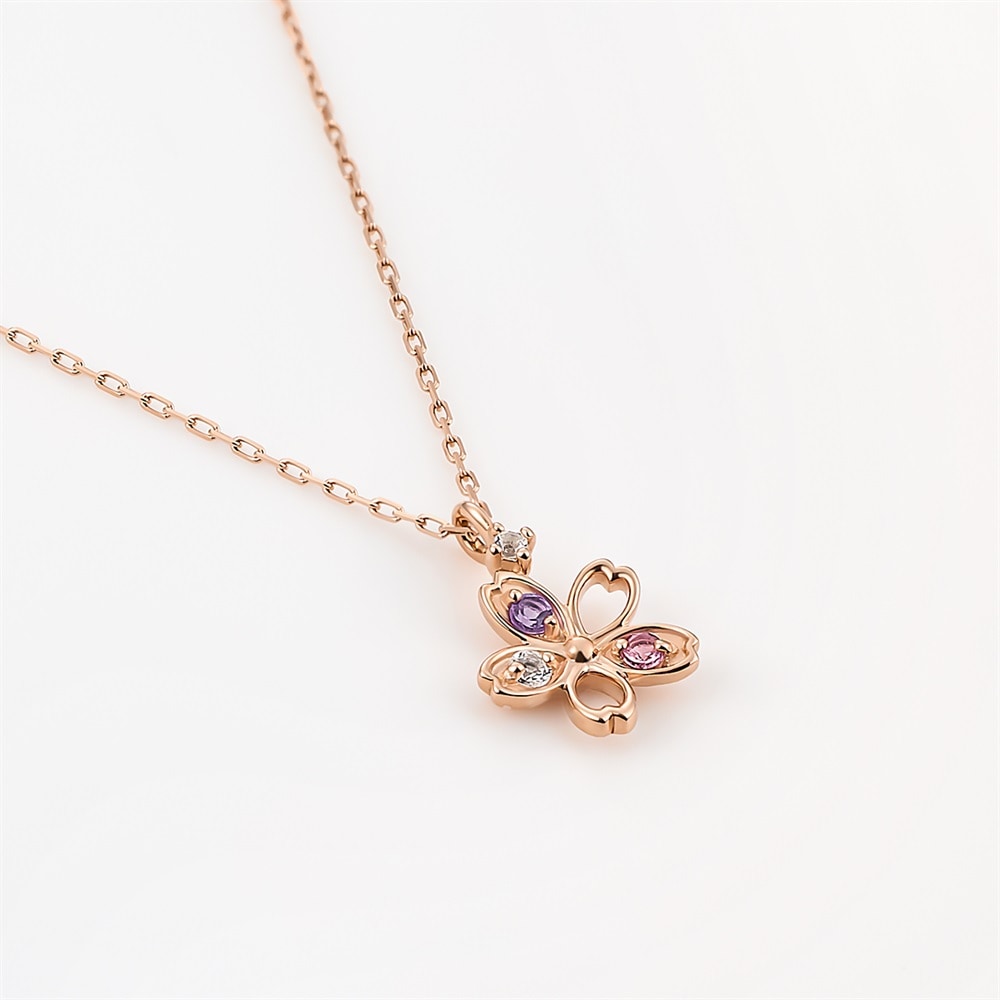 SAKURA Collection一覧はこちら >満開に咲き誇る桜が、身に着けるひとの心に寄り添い幸せを運ぶコレクション。3色の天然石で桜を表現したK10ピンクゴールドネックレス。胸元でふんわりと立体的な桜が花開きます。2月の誕生石アメシストの石言葉は「心の平和」、10月の誕生石トルマリンの石言葉は「愛情」、11月の誕生石トパーズの石言葉は「希望」。大切な方へのギフトにもおすすめです。※天然石・天然素材を使用しているため、実際の色味や風合いが異なる場合がございます。[数量限定ケース&限定ショッパー付き] なくなり次第終了 ※ショッピングバッグ内の画像が限定ケースではない場合、限定ケースのお取り扱いは終了しております。 こちらのジュエリーをご購入のお客さまに、オリジナル真空ミニボトルをプレゼント。 [数量限定]なくなり次第終了※ショッピングバッグ内にノベルティの画像が表示されていない場合、ノベルティのお取り扱いは終了しております。