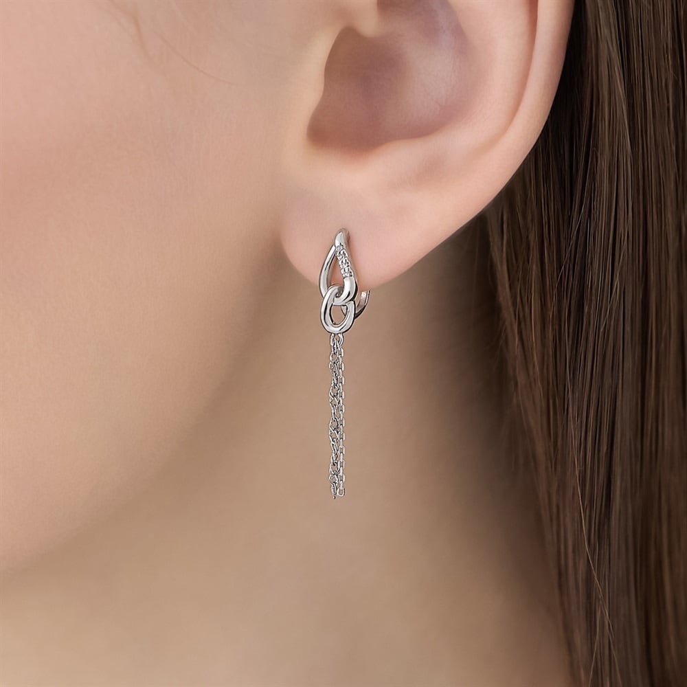 ノンホール派におすすめのイヤリング。存在感のあるデザインチェーンが顔周りを華やかに見せてくれます。水の透明感のある輝きを彷彿とさせるホワイトトパーズを使用。地金の輝きと相まって上質感漂う雰囲気に。ホワイトトパーズ石言葉 は「希望にみちた未来へ導く」。自分へのご褒美やギフトへもおすすめです。