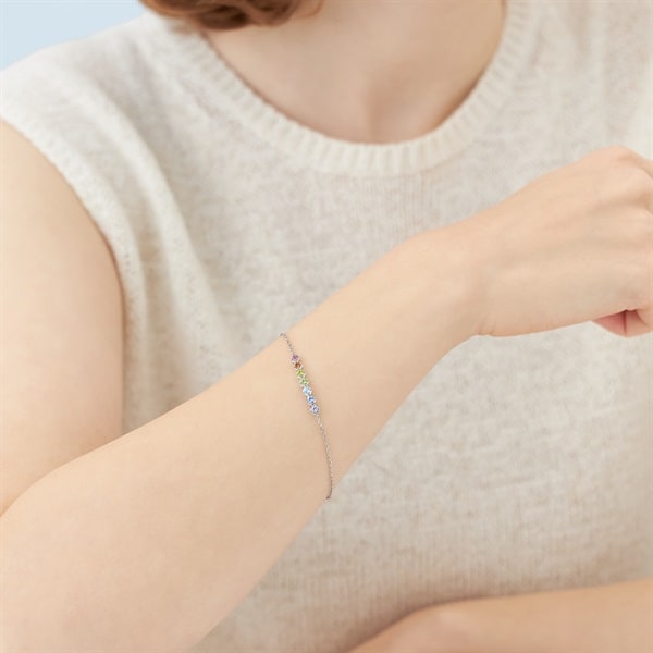 「雨上がりの空」をイメージした、透明感のある清々しいアーリーサマーコレクション。天気雨の後に見上げた空に浮かぶ虹を表現したシリーズのブレスレット。虹は「幸運の兆し」といわれています。白い雲のようなホワイトカラーとパステルカラーのストーンが新鮮なデザイン。日常のコーディネートをより楽しめるアイテムです。プレゼントはもちろん、ご自身へのご褒美にもおすすめです。こちらのジュエリーをご購入のお客さまに、オリジナルミニポーチをプレゼント。[数量限定]なくなり次第終了※ショッピングバッグ内にてお好きな色のオリジナルミニポーチをご選択ください。※ショッピングバッグ内にノベルティの画像が表示されていない場合、ノベルティのお取り扱いは終了しております。