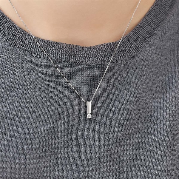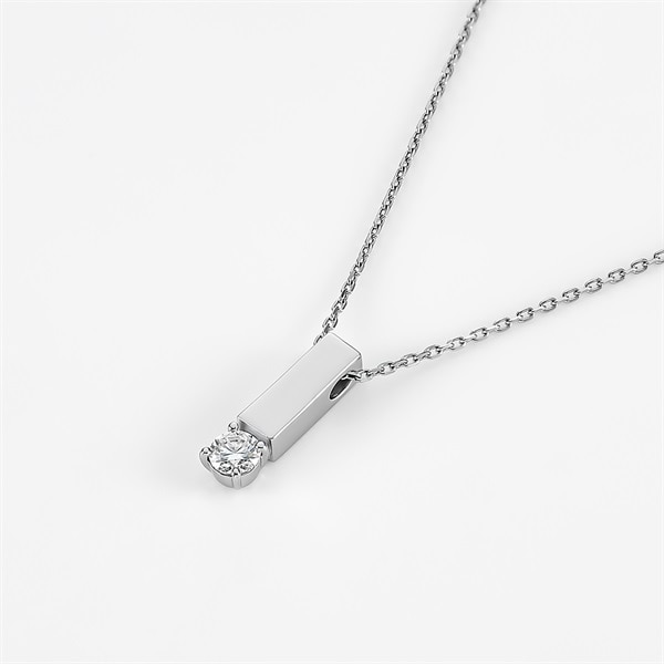 プラチナの輝きをしっかりと感じられるプラチナネックレス。ダイヤモンドの2.5倍の輝きを放つモアサナイトが胸元できらめきます。縦ラインのシルエットが首回りをすっきりと見せてくれるデザイン。鏡面の上品な艶めきとストーンの華やかさが贅沢なネックレスです。