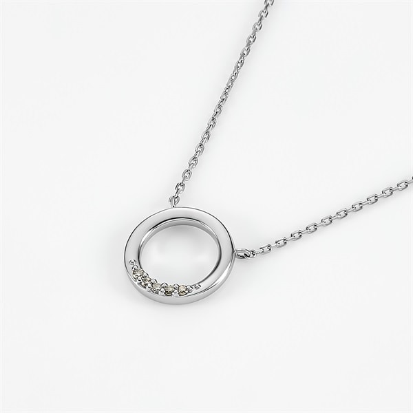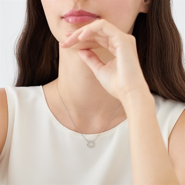 永遠の意味を持つサークルモチーフのプラチナネックレス。ラインに沿って並んだダイヤモンドが特別な輝きを放ちます。抜け感のあるデザインがコーディネートになじみ、さまざまなシーンで活躍します。プラチナの深みのある輝きがコーディネートをワンランクあげてくれるネックレスです。※天然石・天然素材を使用しているため、実際の色味や風合いが異なる場合がございます。
