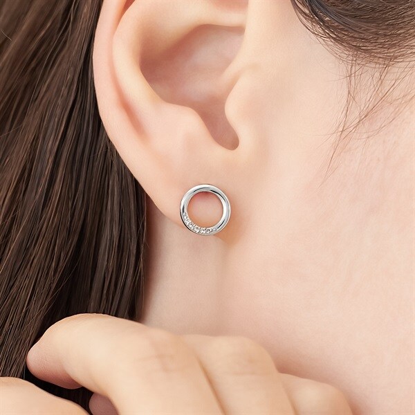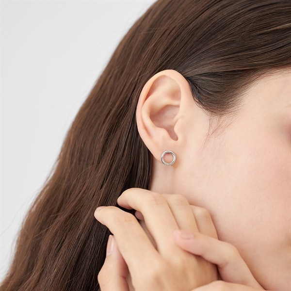 永遠の意味を持つサークルモチーフのプラチナピアス。ラインに沿って並んだダイヤモンドが特別な輝きを放ちます。抜け感のあるデザインがコーディネートになじみ、さまざまなシーンで活躍します。プラチナの深みのある輝きがコーディネートをワンランクあげてくれるピアスです。※天然石・天然素材を使用しているため、実際の色味や風合いが異なる場合がございます。