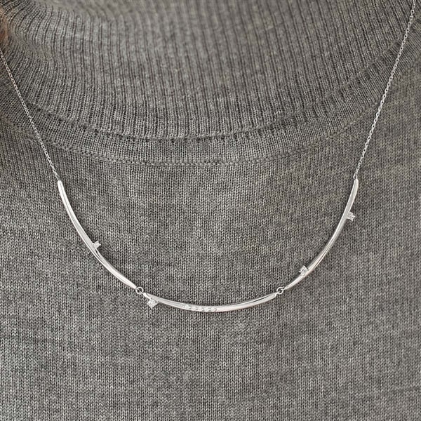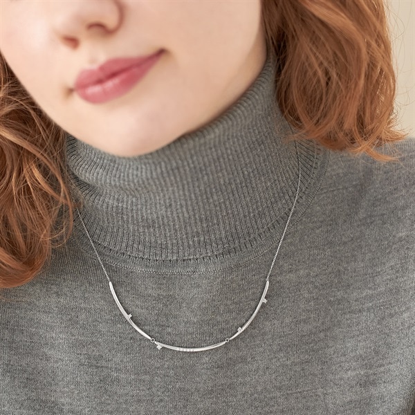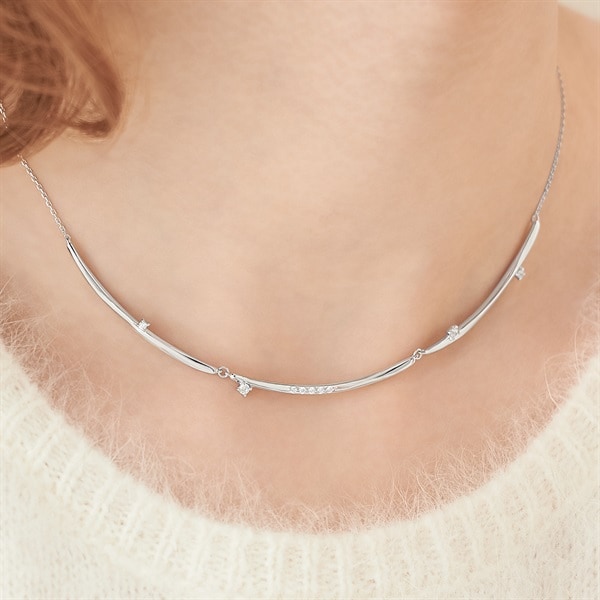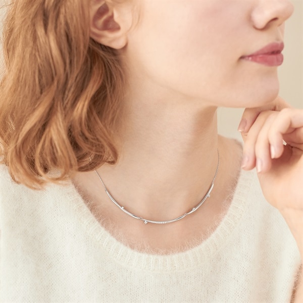 冬の特別なきらめきをテーマにしたジュエリーコレクションLight within me - 私の内なる輝き- 幻想的な光のゆらめきを表現した-Move-シリーズ艶やかな地金が揺れ動き、胸元で輝くネックレス。3本のラインが繋がったボリューム感のあるデザインです。程よいトレンド感と石の繊細なきらめきが華やかな、コーディネートの主役になる1本。長さ調節可能な仕様でご自身の首元にフィットし、デコルテラインを美しく見せてくれます。ロジウムカラーの上品な輝きは、フォーマルからカジュアルまでさまざまなスタイルを引き立てます。【限定ケース付き】こちらのジュエリーは、限定ケースに入れてお包みします。【先行予約特典】 こちらのジュエリーをご購入のお客さまに、Canal 4℃オリジナルウィンターベアをプレゼント。※ベアにお付けするリボンのカラーとメッセージを全16パターンからご選択いただけます。※先行予約期間終了後はオリジナルウィンターベアは3,080円(税込)でご購入いただけます。※ショッピングバッグ内にてお好きなノベルティをご選択ください。選択されていない場合はお付けすることができませんのであらかじめご了承ください。※先行予約枠は数に限りがございます。ご希望のジュエリーがお品切れの場合は通常販売をお待ちください。通常販売開始:10月23日(木)16時00分からメッセージカードの作成は、通常販売時のみとなります。