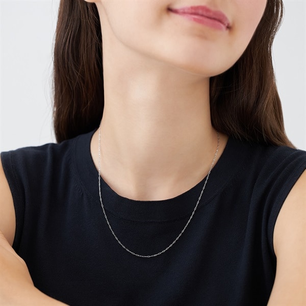 デイリーに着けられるチェーンネックレス。定番のアズキチェーンよりも空間のあるコマをあしらっているため、存在感がありながらも軽やかに着けていただけるデザイン。シルバーカラーの涼やかな色味が清潔な雰囲気をもたらします。チェーンネックレスのみで着けるのはもちろん、45cmの長さがあるのでさまざまな大きさのチャームとも相性よくお使いいただけます。【Canal4℃ ネックレスチェーン&チャーム 一覧はこちら】