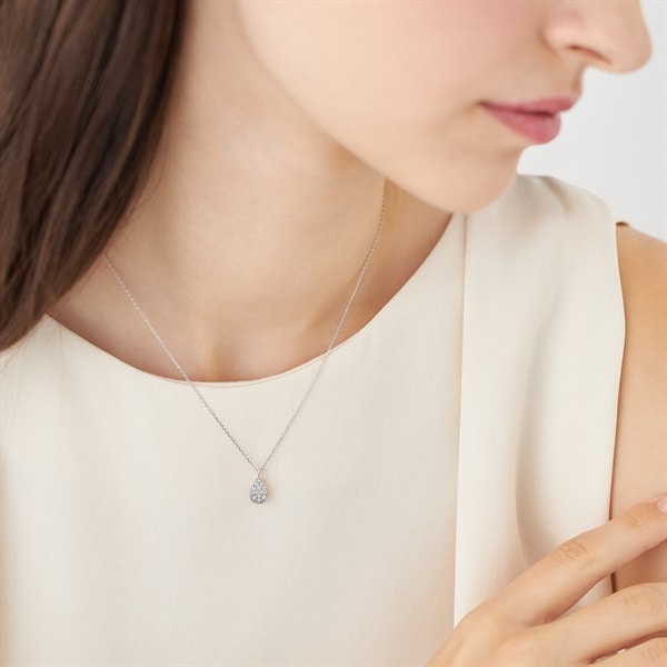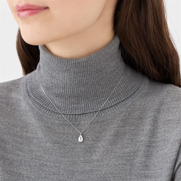 リバーシブルでお使いいただけるしずくモチーフのネックレス。「恵み」や「癒し」を象徴するしずくデザインが、胸もとにやさしい輝きを添えます。裏表で異なる表情を楽しめるため、コーディネートの幅が広がります。ご自身用はもちろん、大切な方へのギフトにもおすすめです。