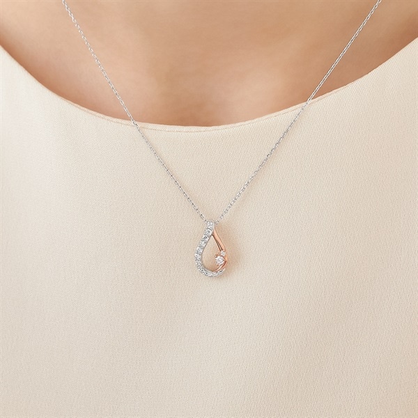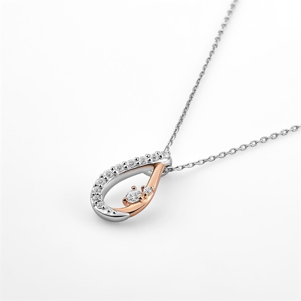 コンビカラーが上品に映えるしずくモチーフのネックレス。しずくには「恵み」や「癒し」をもたらすという意味が込められています。スッキリとしたラインで、どのような装いにも自然になじむデザインのため、大切な方へのギフトにおすすめです。