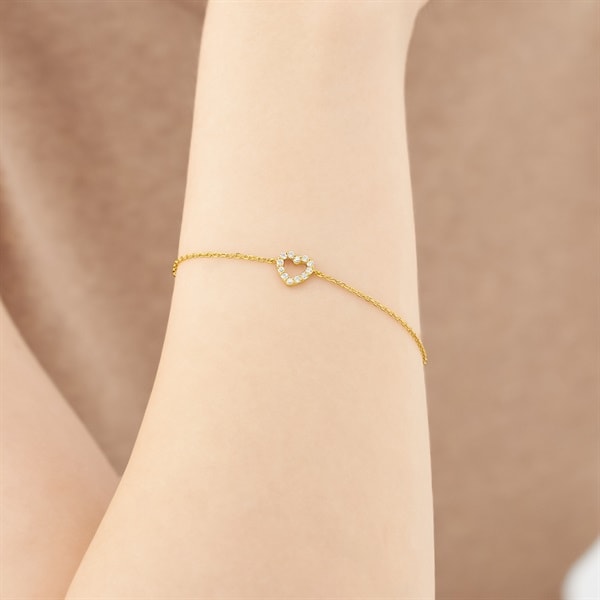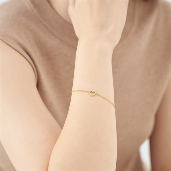 華やかな石使いが魅力のハートモチーフブレスレット。かっちりとした仕上がりで、大人っぽい上品な印象を与えます。愛情を意味するハートモチーフはお守りとしてもおすすめ。動くたびきらめき、コーディネートのアクセントとして身に着けられます。