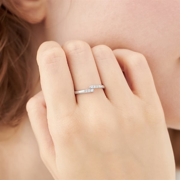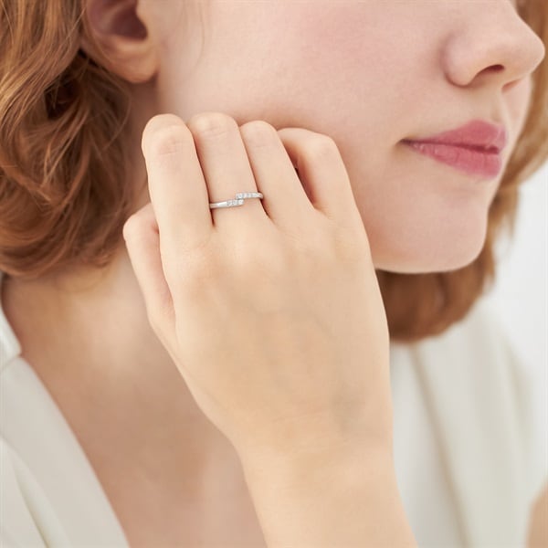 やわらかなラインが指を包むリング。繊細なラインが指になじみ、きらめくストーンがアクセントとなるデザイン。オフィスからオケージョンまで幅広いシーンで活躍するアイテムです。※ボリューム(幅)のあるリングは、通常より着用時にサイズが小さく感じる場合がございます。