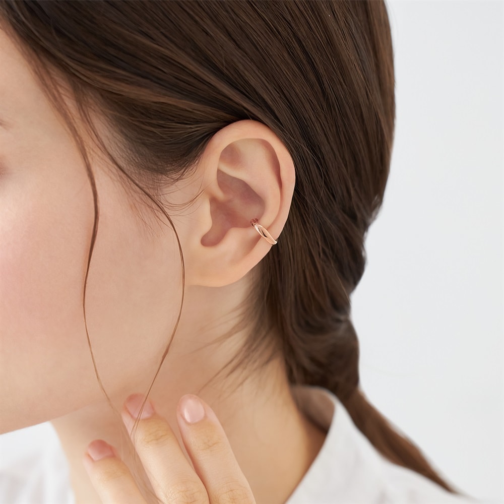デイリーに使いやすい小ぶりなウェーブラインのイヤーカフ。ピンクゴールドカラーのやわらかな輝きが顔周りを可憐に彩ります。シンプルにひとつだけや、お気に入りのジュエリーとのレイヤードにもおすすめです。