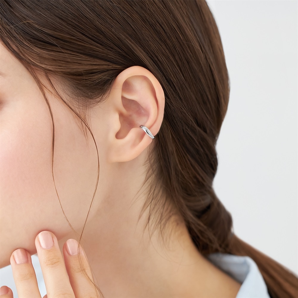 デイリーに使いやすい小ぶりなウェーブラインのイヤーカフ。ロジウムコーティングの品のある輝きが顔周りに清潔感をもたらします。シンプルにひとつだけや、お気に入りのジュエリーとのレイヤードにもおすすめです。