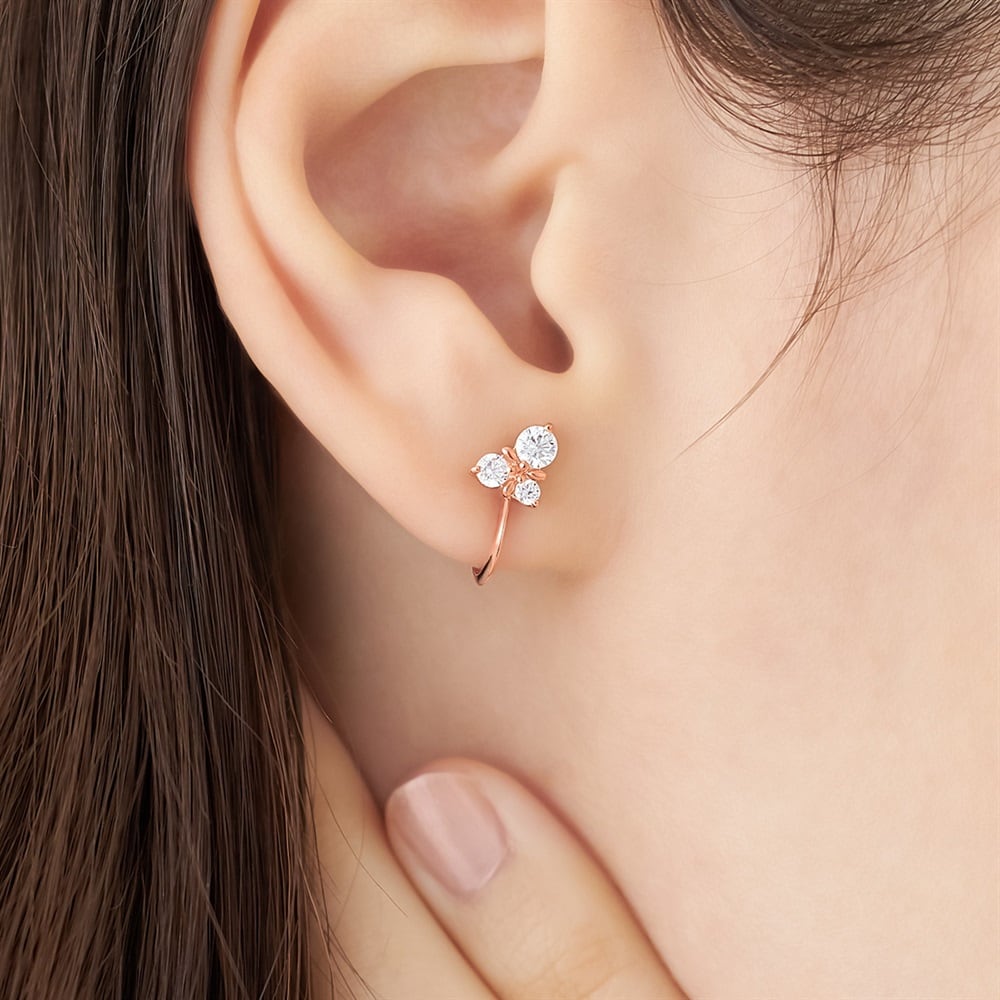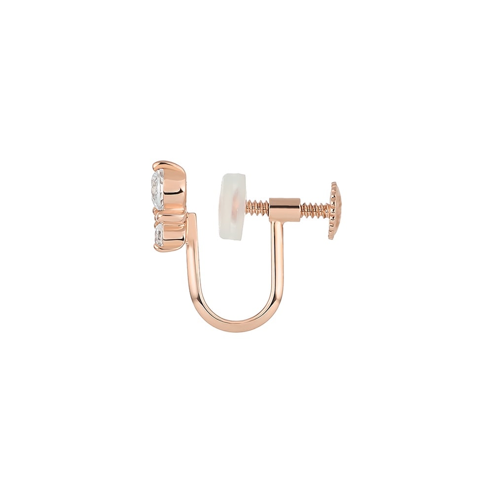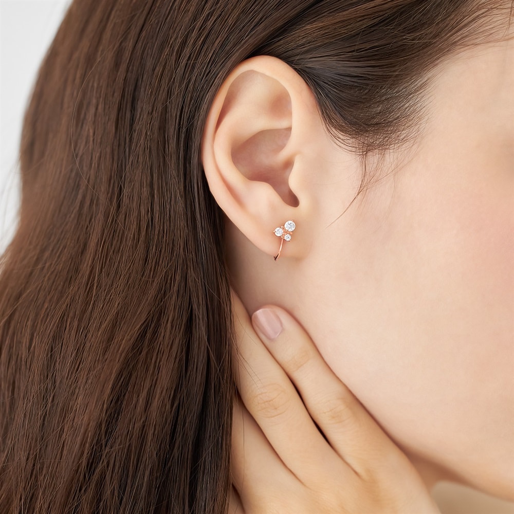 デイリーに使いやすいクリアストーンを3石寄せたイヤリング。ピンクゴールドカラーのやわらかな輝きが、顔周りを優しい印象に演出します。小ぶりで繊細なデザインは、ご自身用にはもちろん、大切な方へのギフトにもおすすめです。