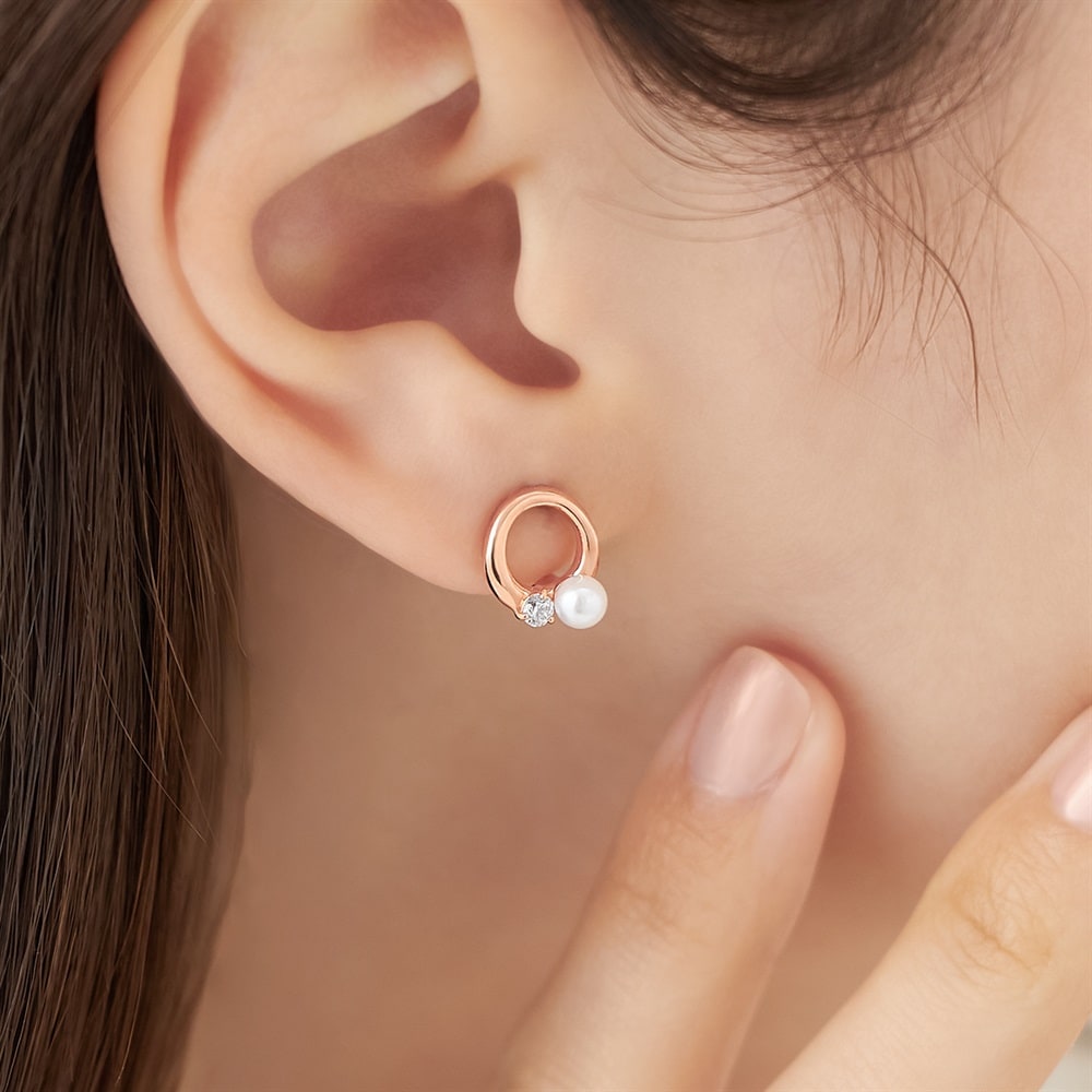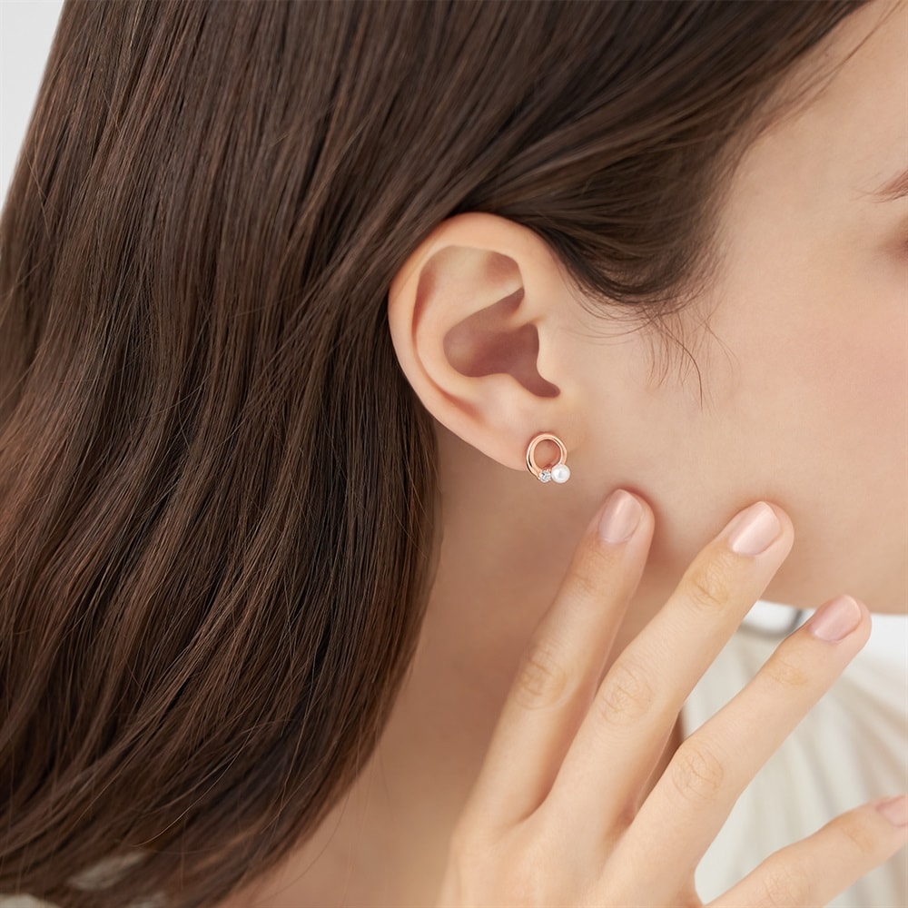 デイリーに使いやすいサークルモチーフのイヤリング。ピンクゴールドカラーのやわらかな輝きと、パールの光沢が顔周りを可憐に彩るデザイン。ラフに描かれたサークルのラインがカジュアルさをプラスします。程よいサイズ感でご自身用はもちろん、大切な方へのギフトにもおすすめです。※天然石・天然素材を使用しているため、実際の色味や風合いが異なる場合がございます。