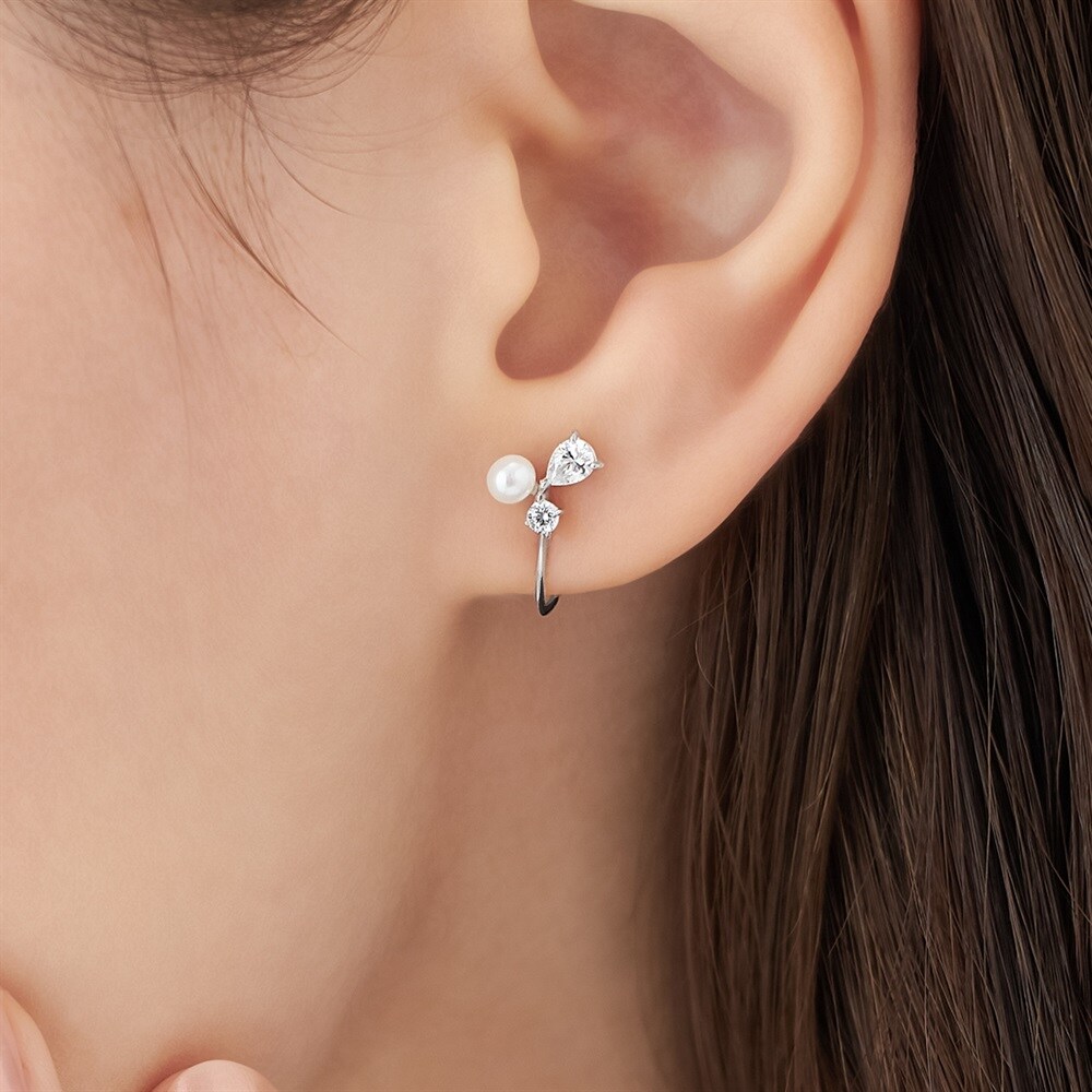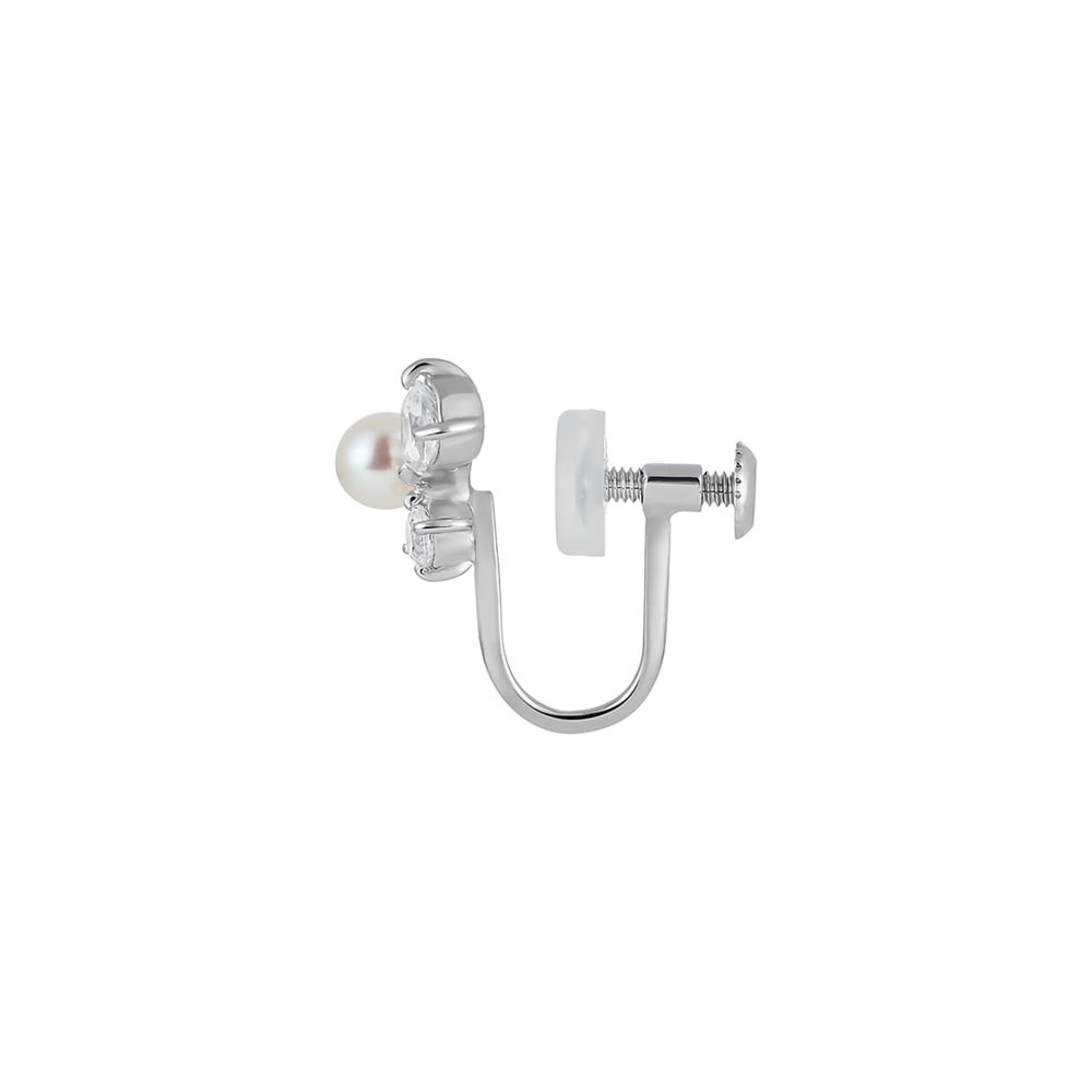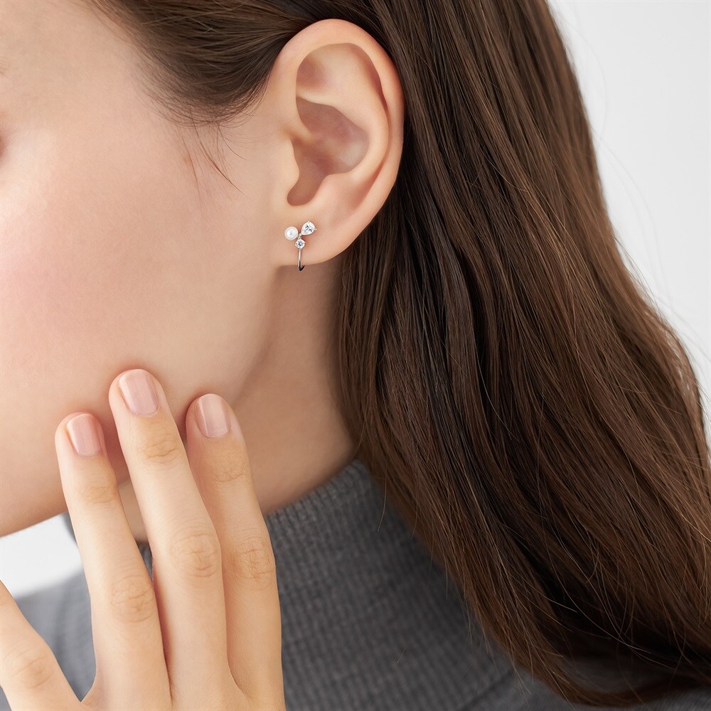 デイリーに使いやすいクリアストーンとパールをあしらったイヤリング。ロジウムコーティングの上品な輝きとパールのやわらかな光沢が、顔周りに清潔感を添えます。小ぶりで繊細なデザインは、ご自身用にはもちろん、大切な方へのギフトにもおすすめです。※天然石・天然素材を使用しているため、実際の色味や風合いが異なる場合がございます。