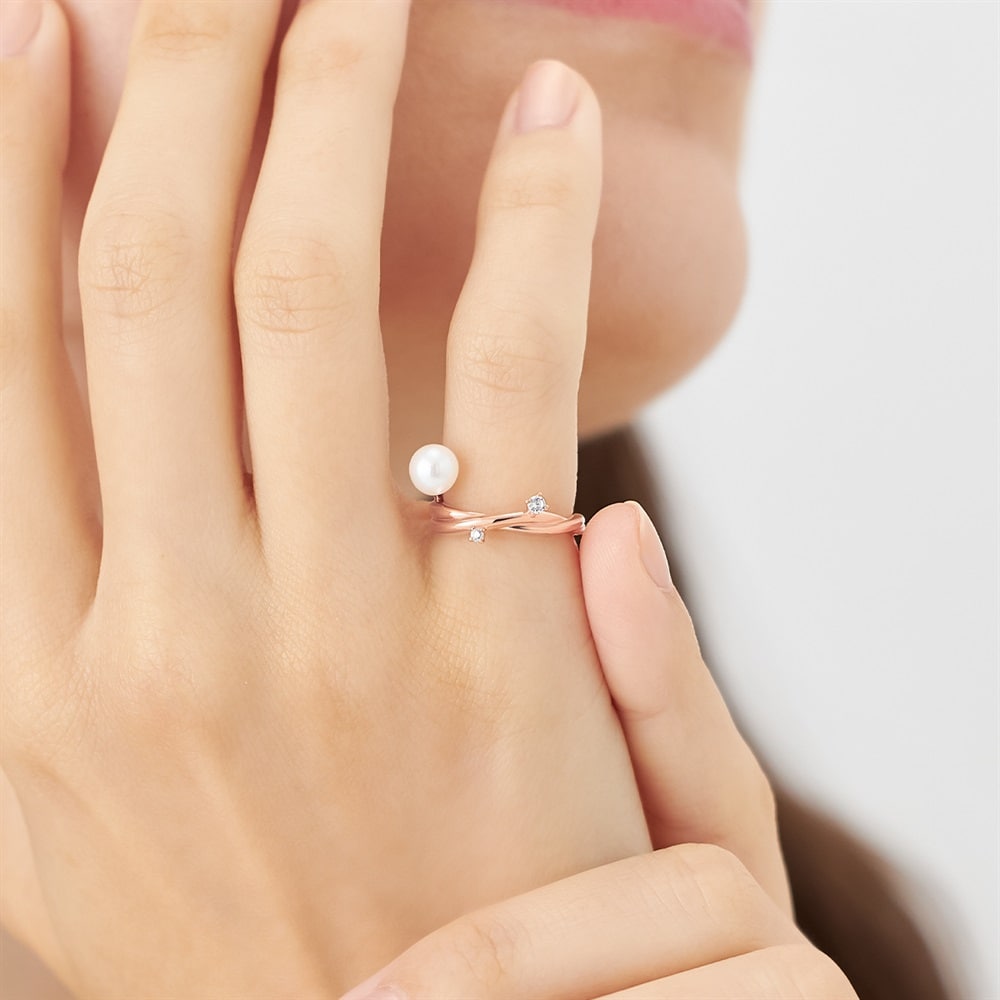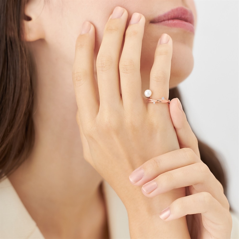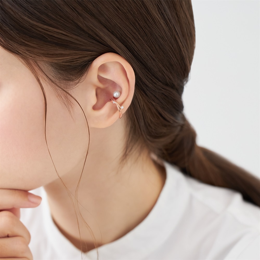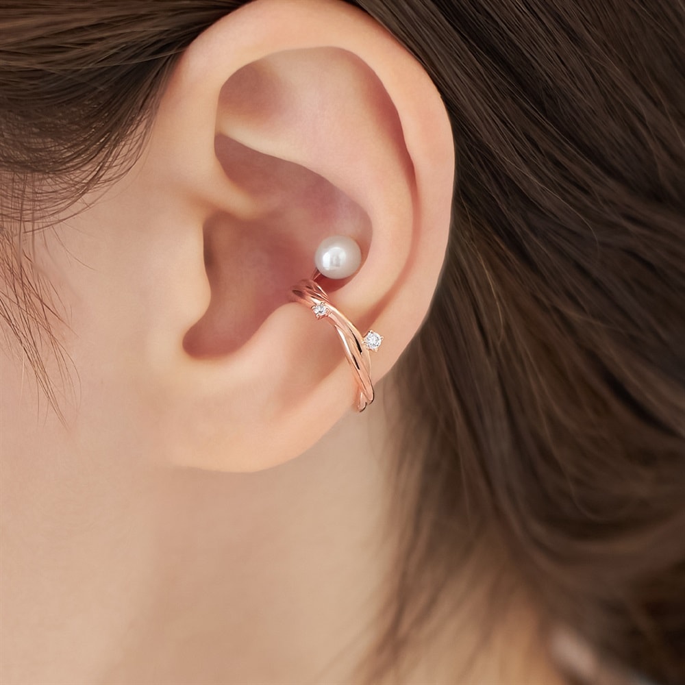 耳の内側からのぞく遊び心のあるパールがアクセントのカフリング。ピンクゴールドカラーのやわらかな輝きが顔周りを可憐に彩ります。ピンキーリングとしてもお使いいただける、ひとつでスタイルが決まる存在感のあるアイテムです。※天然石・天然素材を使用しているため、実際の色味や風合いが異なる場合がございます。