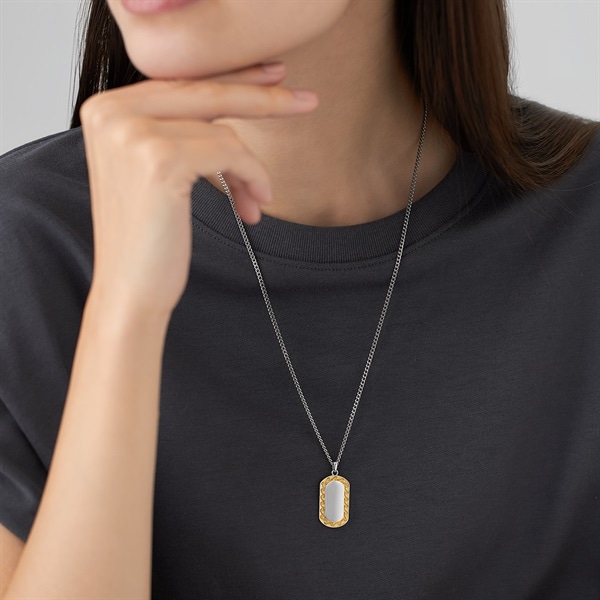 イエローカラーの波の模様がアクセントのプレートネックレス。nem.の「新たな自分に出逢う」というコンセプトを、物事がうまく進むと言われる波のモチーフで表現。プレートの周りを波の模様が縁取ったデザインは、エッジの効いた空気感を生み出します。コンビネーションカラーがさり気なく個性を放ち、普段のコーディネートをアップデートしてくれます。大切な方とシェアしたり、リンクコーデを楽しむのもおすすめです。