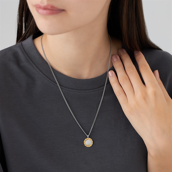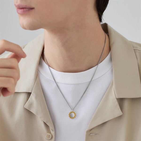イエローカラーの波の模様がアクセントのサークルネックレスnem.の「新たな自分に出逢う」というコンセプトを、物事がうまく進むと言われる波のモチーフで表現。プレートの周りを波の模様が縁取ったデザインは、エッジの効いた空気感を生み出します。コンビネーションカラーがさり気なく個性を放ち、普段のコーディネートをアップデートしてくれます。大切な方とシェアしたり、リンクコーデを楽しむのもおすすめです。