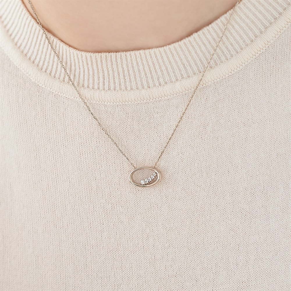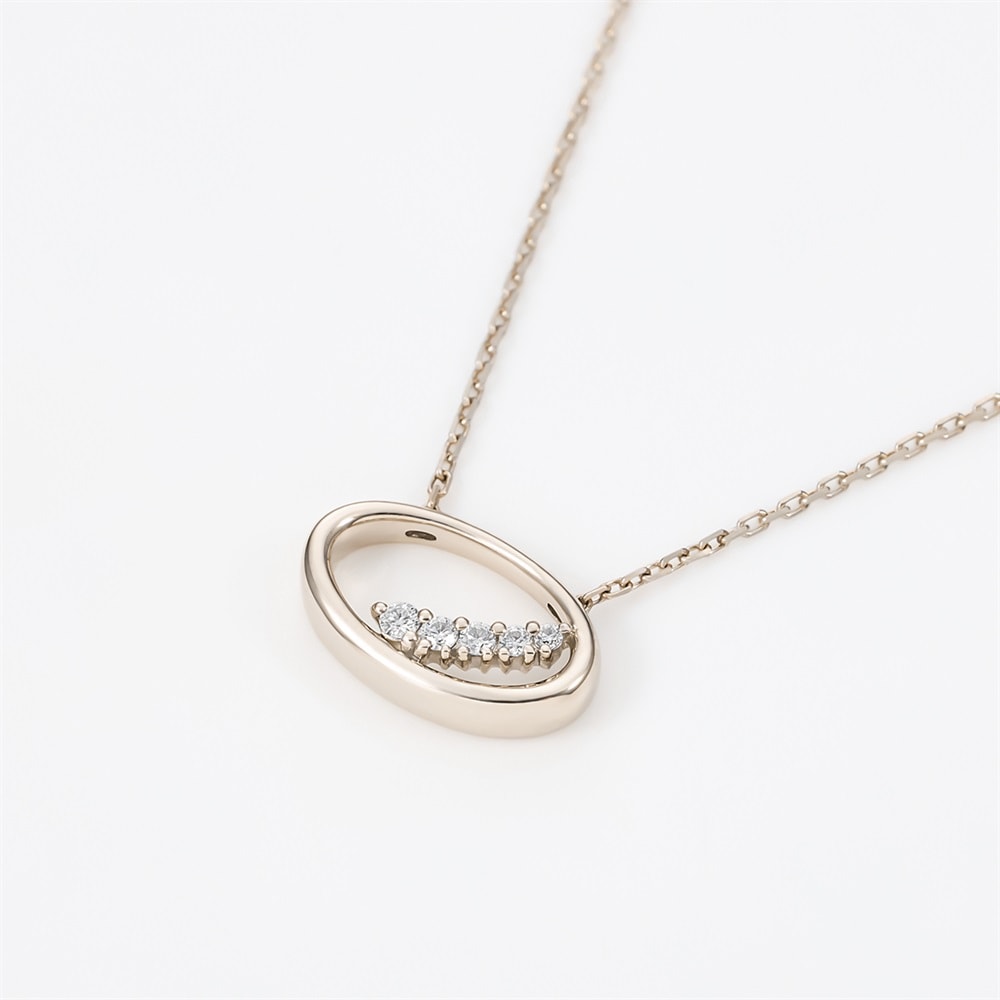 Canal 4℃初となるピンクシルバーを使用した、落ち着いた上品な色合いが魅力のSheer Roseシリーズ。建築物や美術など様々な場面で存在する、もっとも美しいとされる「黄金比」を用いてデザインされたオーバルモチーフに、美しい輝きと優れた耐久性をもつ「モアサナイト」をあしらったネックレス。コーティングのほどこされていないピンクシルバーが、地金本来のナチュラルな輝きを放ちます。オーバルの内側に流れるようにあしらったモアサナイトが胸元で存在感を放ち、永遠の輝きと調和をもたらします。大切な人へのギフトや自分へのご褒美におすすめです。