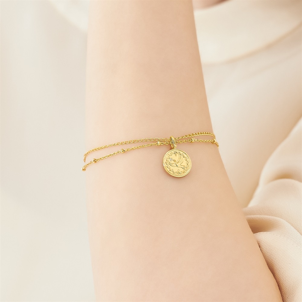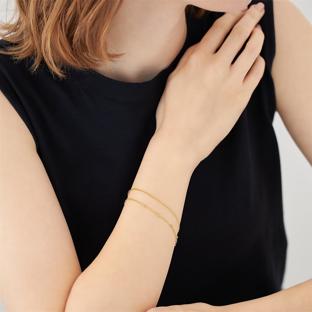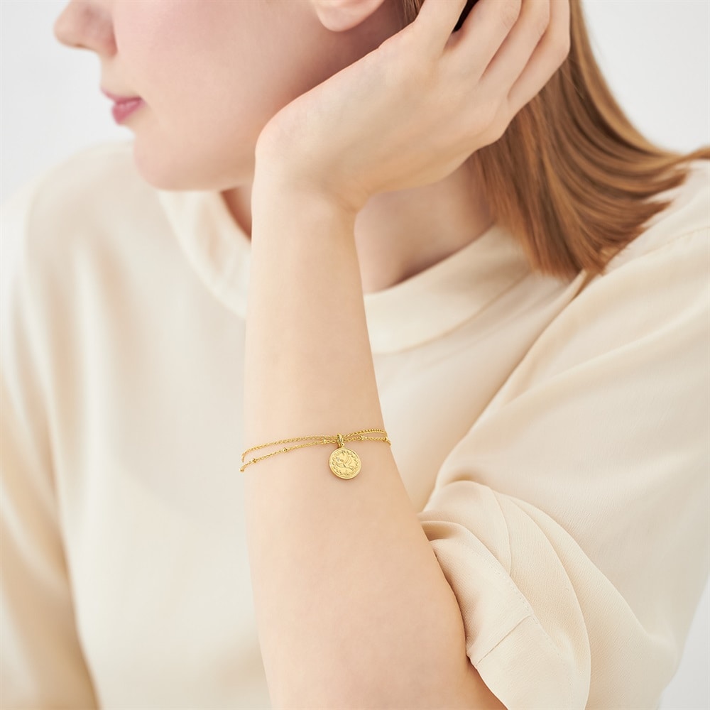 自然で自由にジュエリーの重ね着けを楽しんでいただける「Layered(レイヤード)」ジュエリーコレクション。1つ着けるだけでレイヤードスタイルが完成するブレスレット。スタッズのパーツがほどよいアクセント。シンプルなチェーンコーディネートなので、デイリーユースにおすすめです。コーディネートアイテム品番:152544211001 シルバー チャームはこちら >