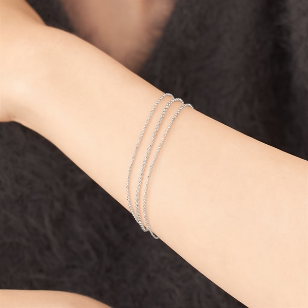 冬の特別なきらめきをテーマにしたジュエリーコレクションLight within me - 私の内なる輝き- 弾けるような光の粒を表現した-bubble-シリーズ弾ける光を3種類の異なるチェーンで表現したブレスレット。ボールチェーンが動くたびにきらめき、身に着けるひとの手元を輝かせるデザイン。手元に存在感を与えるレイヤードデザインはコーディネートのアクセントに。カジュアルからフォーマルまで、様々なスタイルにマッチするアイテムです。【限定ケース付き】こちらのジュエリーは、限定ケースに入れてお包みします。【先行予約特典】 こちらのジュエリーをご購入のお客さまに、Canal 4℃オリジナルウィンターベアをプレゼント。※ベアにお付けするリボンのカラーとメッセージを全16パターンからご選択いただけます。※先行予約期間終了後はオリジナルウィンターベアは3,080円(税込)でご購入いただけます。※ショッピングバッグ内にてお好きなノベルティをご選択ください。選択されていない場合はお付けすることができませんのであらかじめご了承ください。※先行予約枠は数に限りがございます。ご希望のジュエリーがお品切れの場合は通常販売をお待ちください。通常販売開始:10月23日(木)16時00分からメッセージカードの作成は、通常販売時のみとなります。