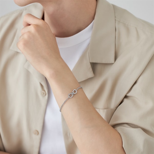 さり気なく面取りをほどこした高級感のある馬蹄モチーフのブレスレット。nem.の「新たな自分に出逢う」というコンセプトを、幸運を呼び込んで逃がさない意味の馬蹄モチーフで表現。程よいボリュームのチェーンが腕周りにトレンド感を演出。デイリーからフォーマルな装いまで、あらゆるファッションにふさわしい上質なジェンダーレスジュエリー。普段のコーディネートをさり気なくアップデートしてくれます。大切な方とシェアしたり、リンクコーデを楽しむのもおすすめです。