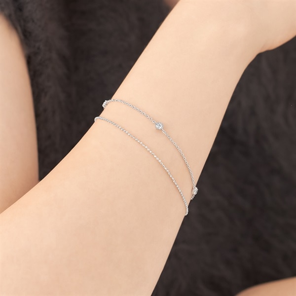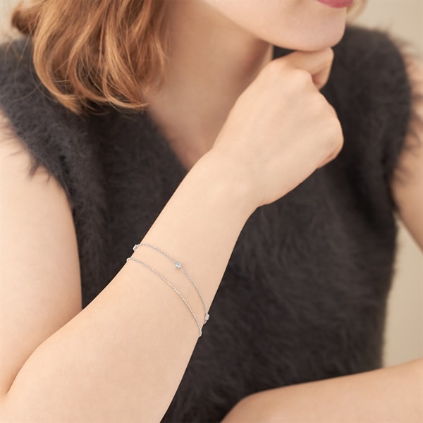 冬の特別なきらめきをテーマにしたジュエリーコレクションLight within me - 私の内なる輝き- 弾けるような光の粒を表現した-bubble-シリーズ弾ける光を3種類の異なる石座で表現したステーションブレスレット。光の粒をイメージしたボールチェーンが動くたびにきらめき、身に着けるひとの手元を輝かせます。シンプルでさまざまなスタイルにマッチするデザインです。【限定ケース付き】こちらのジュエリーは、限定ケースに入れてお包みします。【先行予約特典】 こちらのジュエリーをご購入のお客さまに、Canal 4℃オリジナルウィンターベアをプレゼント。※ベアにお付けするリボンのカラーとメッセージを全16パターンからご選択いただけます。※先行予約期間終了後はオリジナルウィンターベアは3,080円(税込)でご購入いただけます。※ショッピングバッグ内にてお好きなノベルティをご選択ください。選択されていない場合はお付けすることができませんのであらかじめご了承ください。※先行予約枠は数に限りがございます。ご希望のジュエリーがお品切れの場合は通常販売をお待ちください。通常販売開始:10月23日(木)16時00分からメッセージカードの作成は、通常販売時のみとなります。