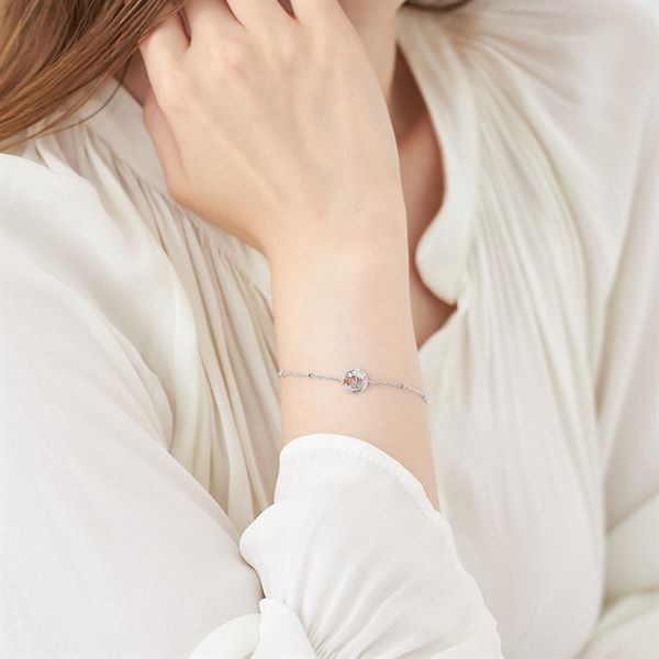 運気を高める星座石をあしらったZodiacシリーズ。おとめ座をモチーフにデザインしたブレスレット。星をつなぐ星座と同じ配置にあしらわれたストーンがきらめきます。おとめ座の星座石「シトリン」は、ポジティブな気持ちや希望をもたらすとされており、お守りとしても身に着けられます。華やかなチェーンがアクセントとなるアイテムです。※天然石・天然素材を使用しているため、実際の色味や風合いが異なる場合がございます。